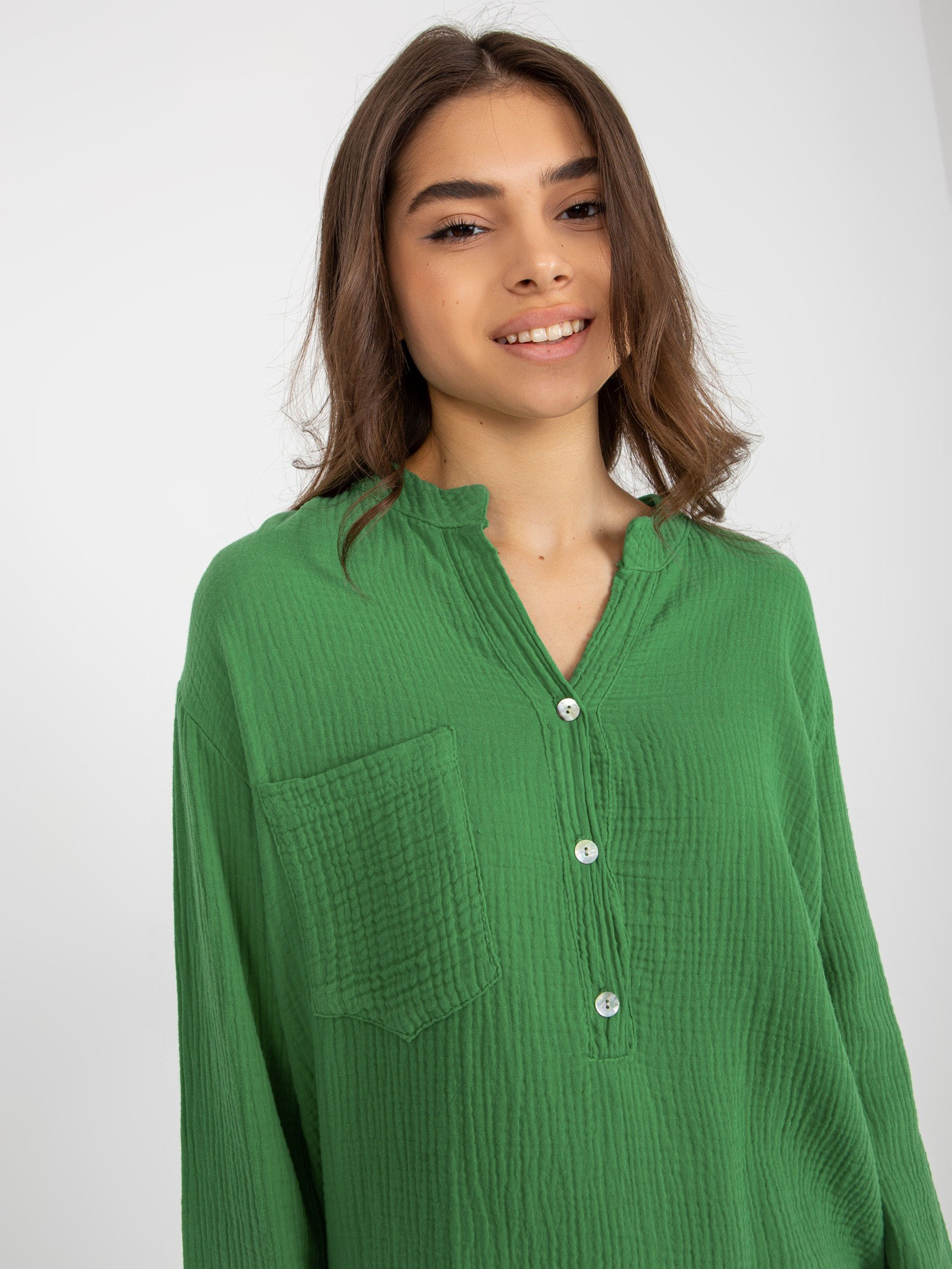 Zielona luźna bluzka koszulowa OCH BELLA.