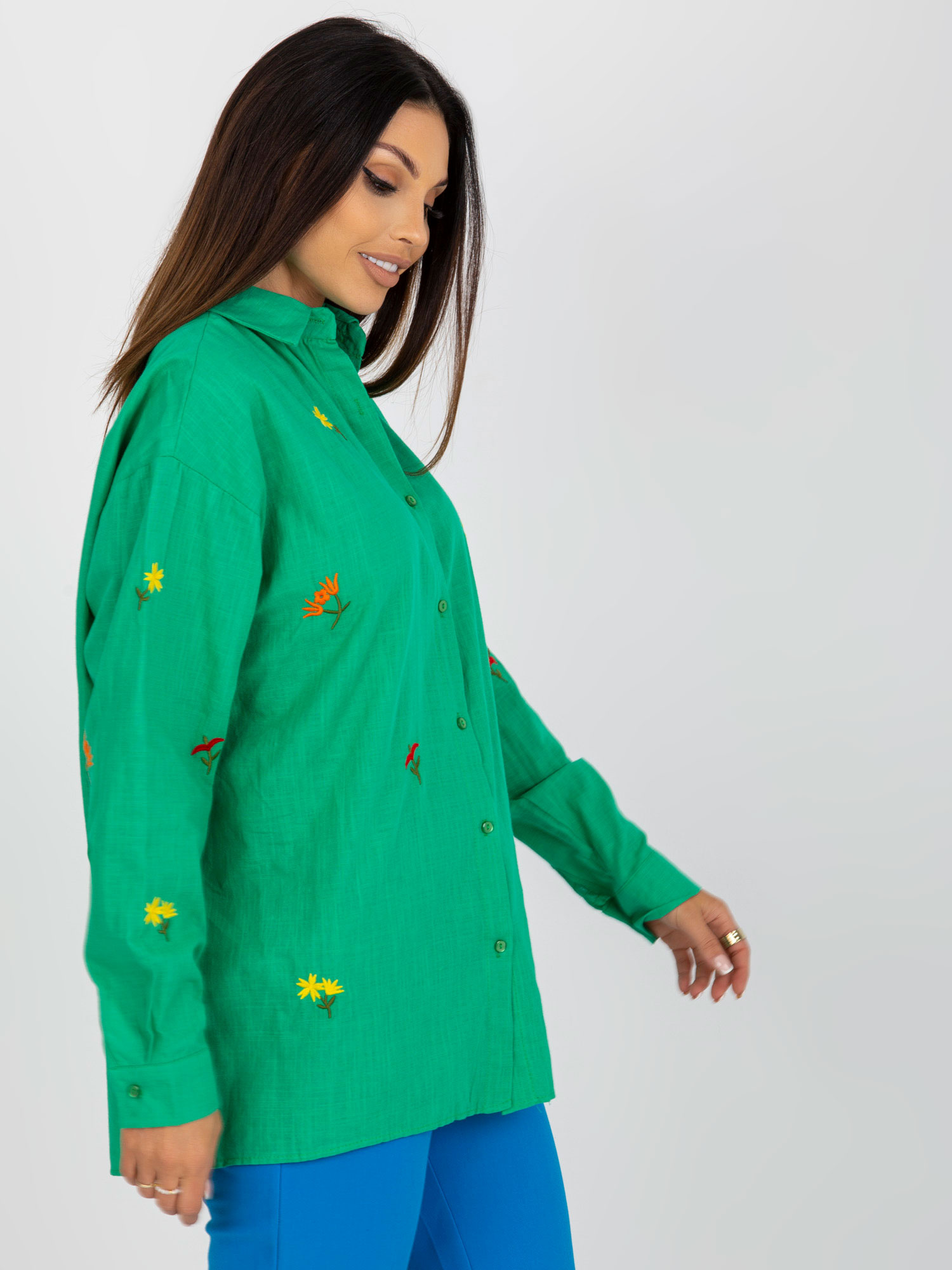 Zielona rozpinana koszula oversize z haftem .
