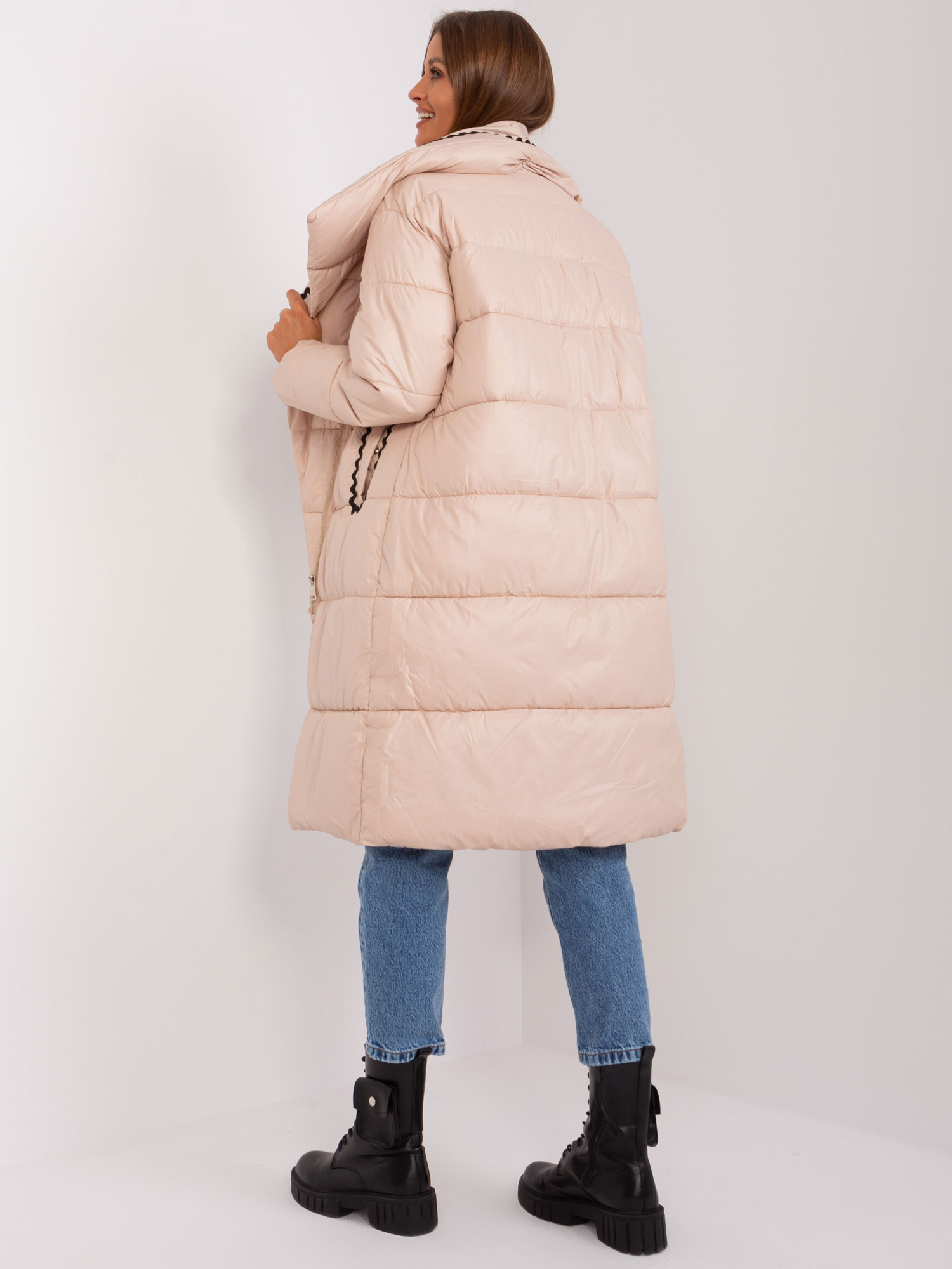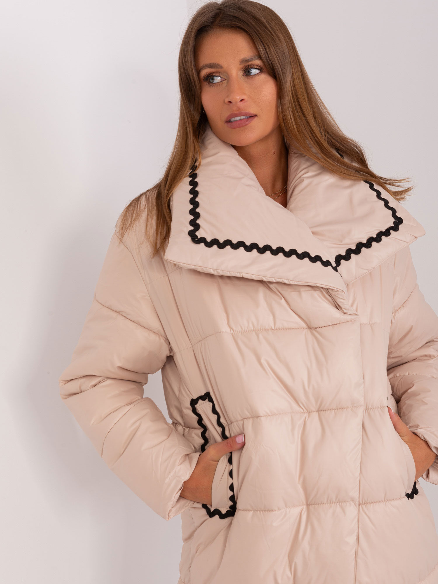 Beżowa puchowa kurtka zimowa bez kaptura .