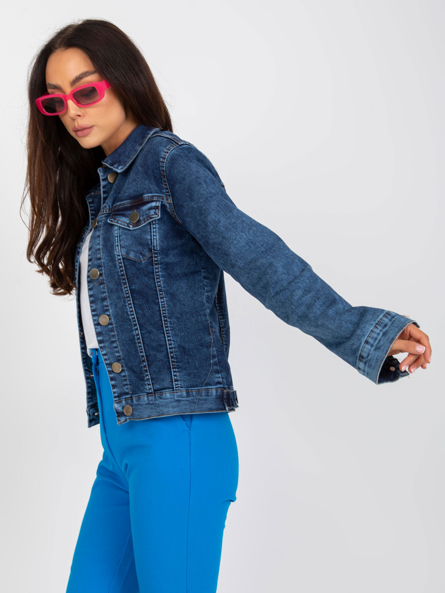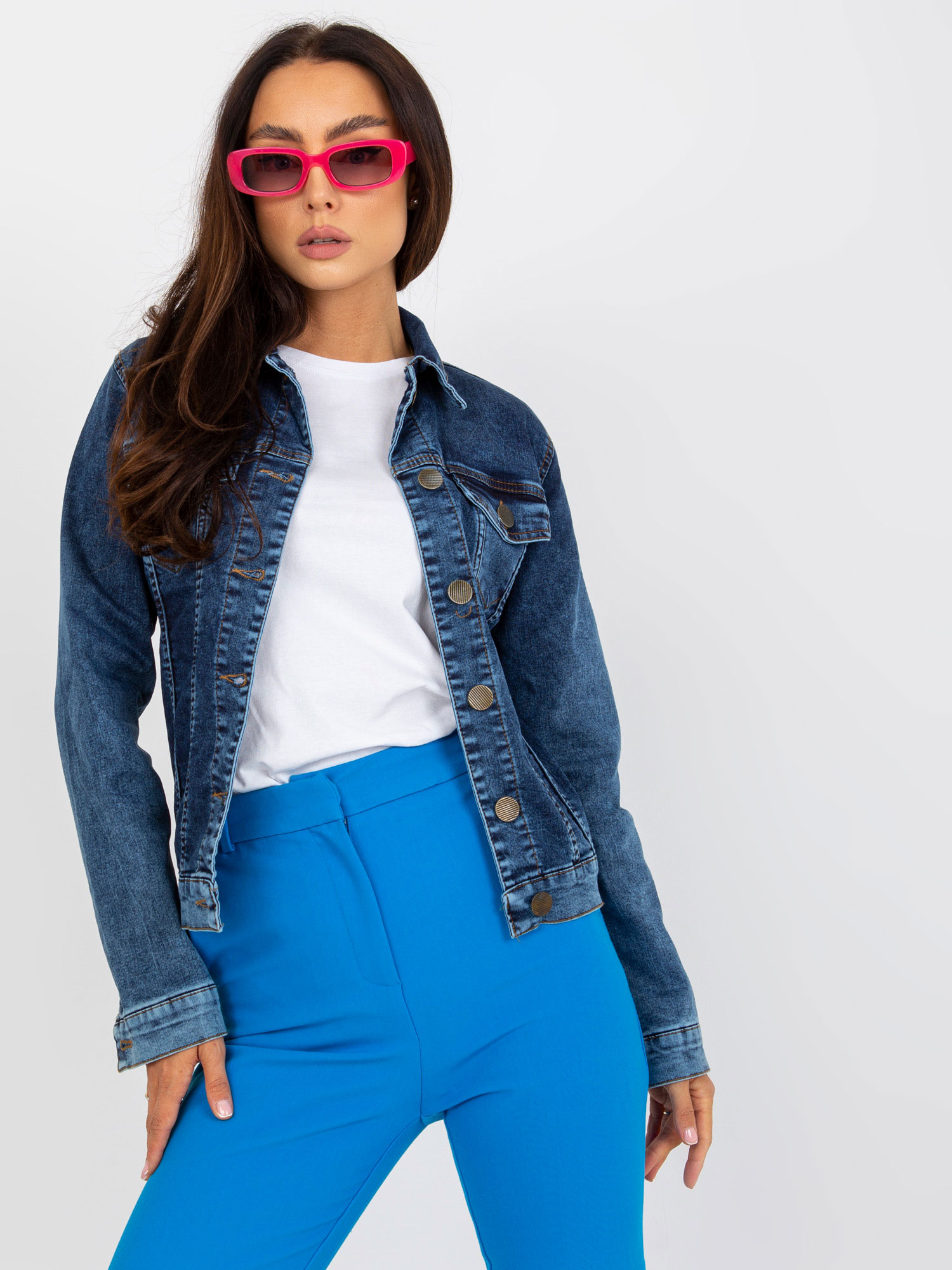 Niebieska kurtka jeansowa z długim rękawem RUE PARIS .