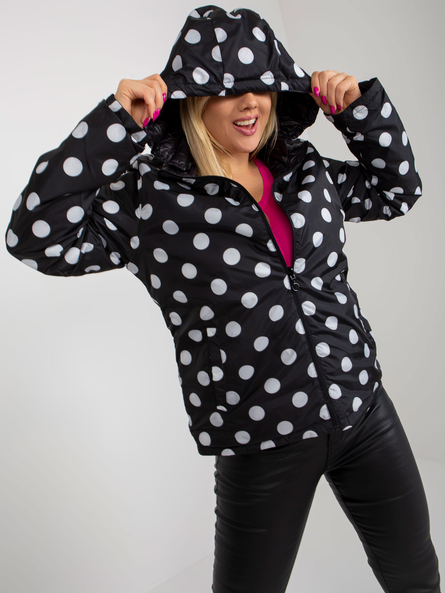 Czarna dwustronna kurtka plus size z kapturem .