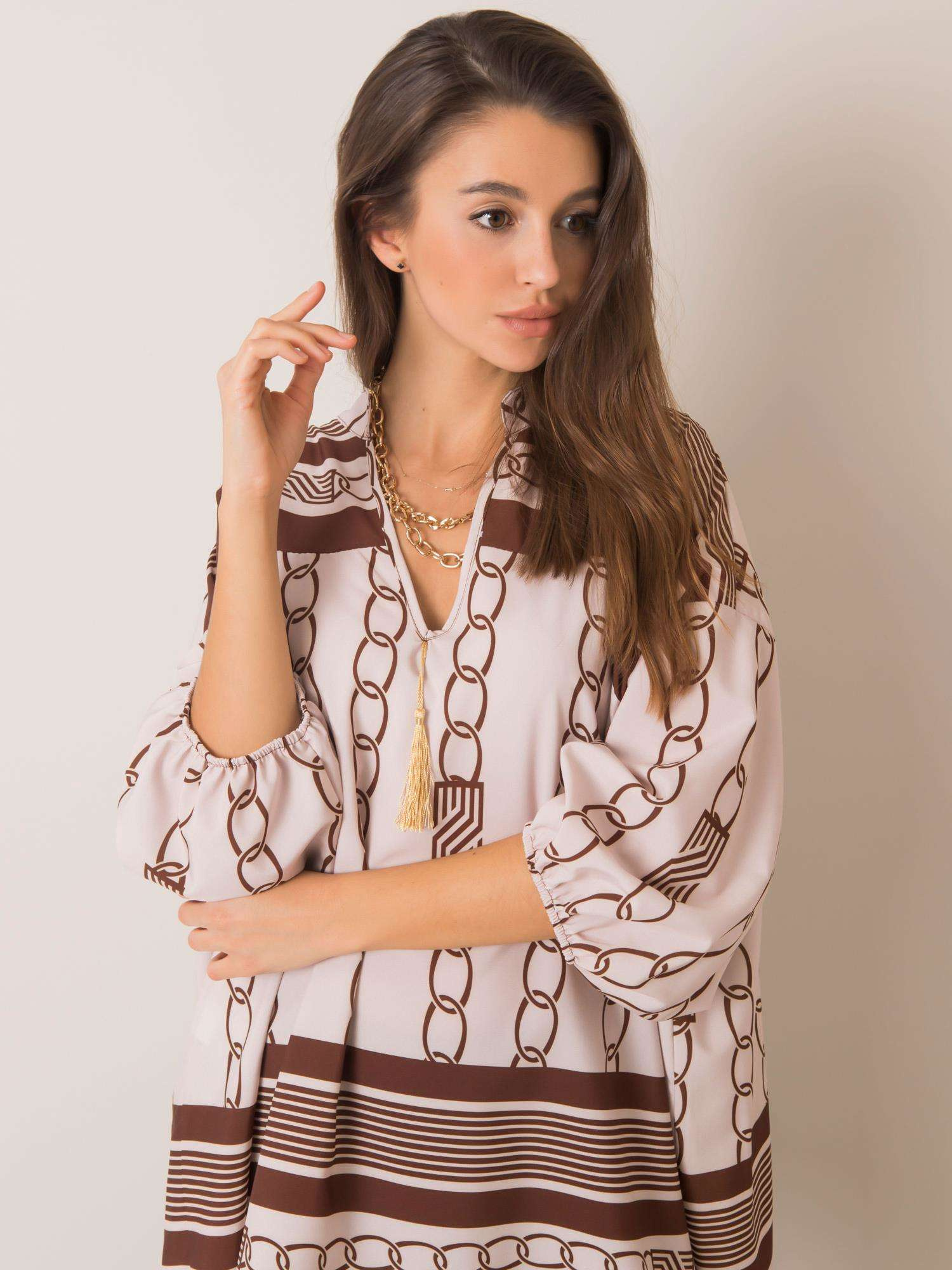Modelka ma na sobie rozmiar S. Wymiary modelki: wzrost 175 cm, biust 84 cm, talia 62 cm, biodra 93 cm.