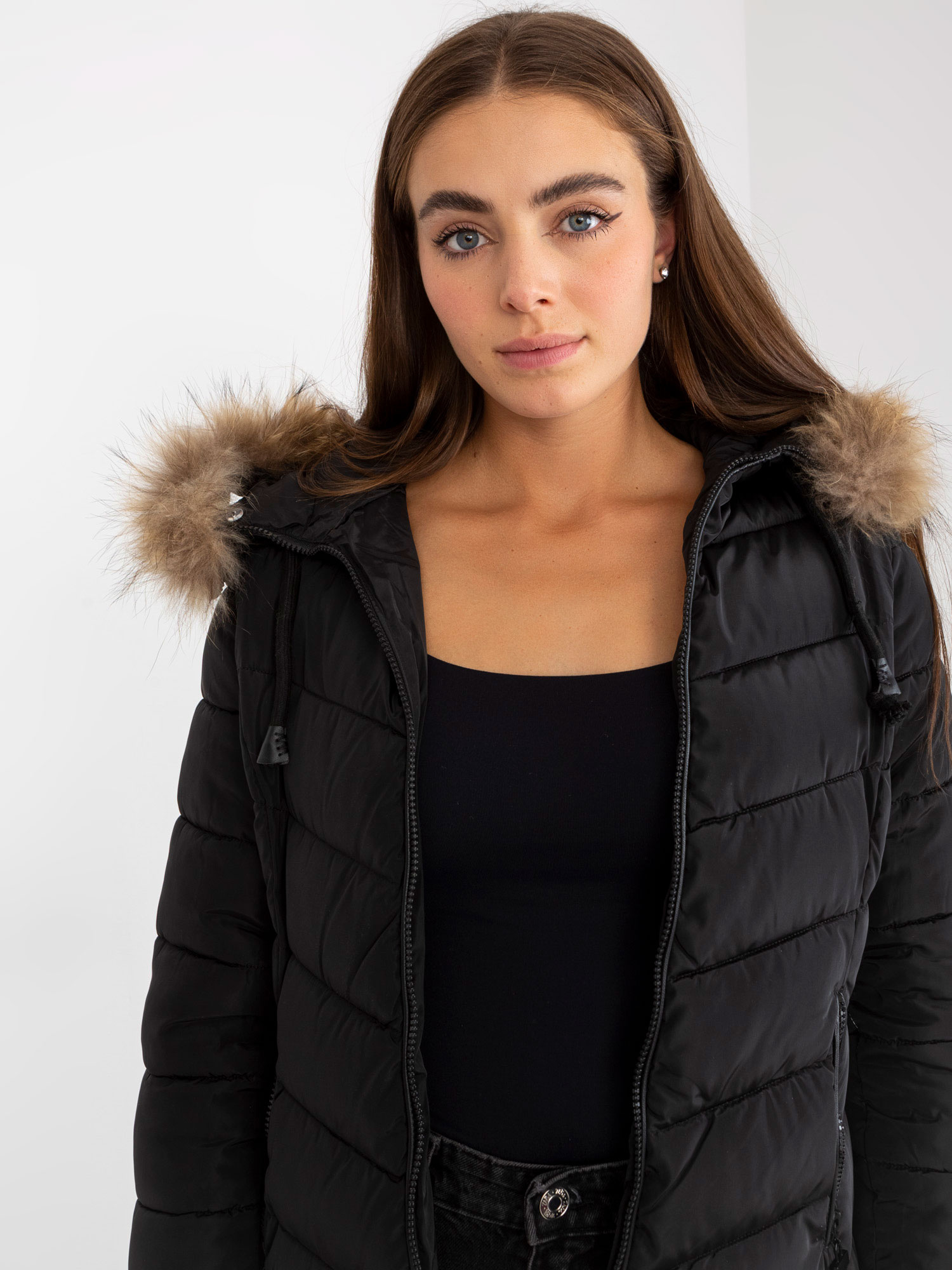Czarna kurtka zimowa z odpinanym futerkiem.