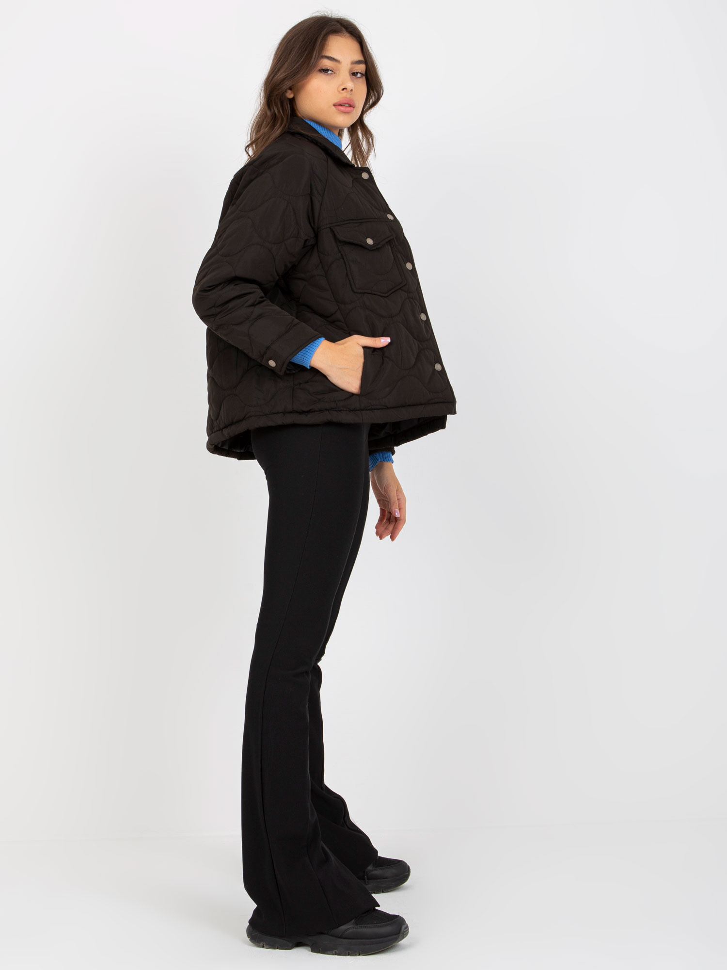 Czarna przejściowa kurtka pikowana bez kaptura .