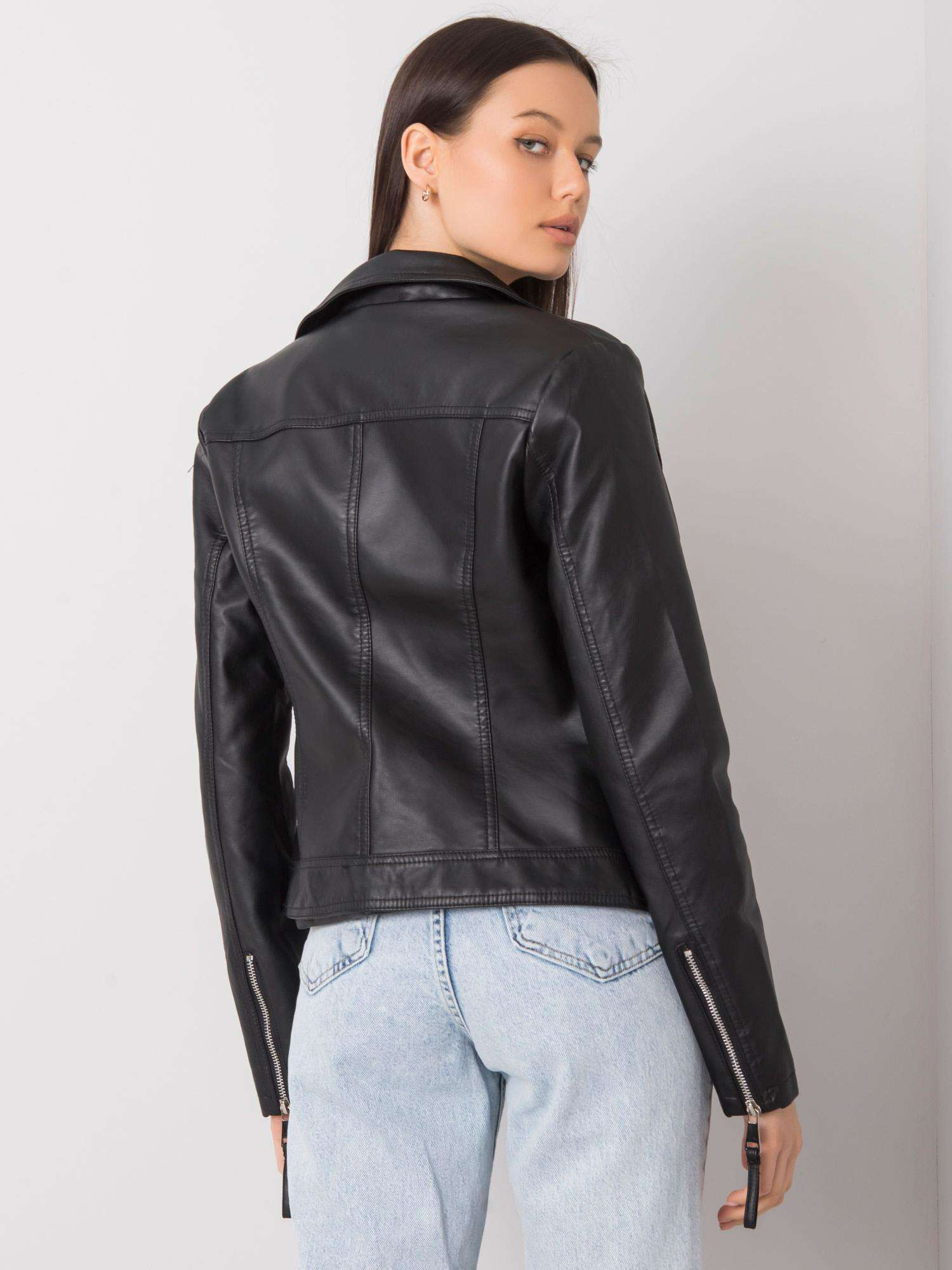 Czarna damska kurtka z ekoskóry.