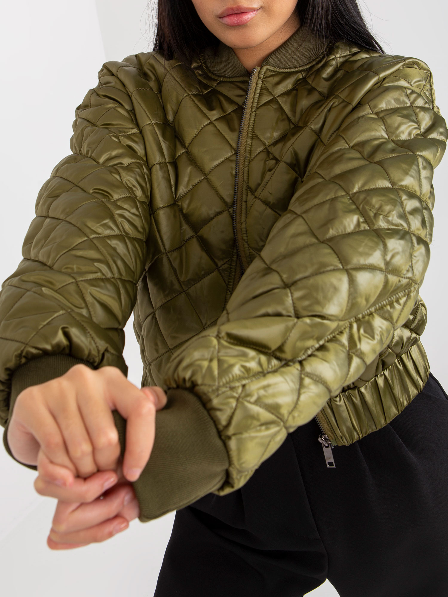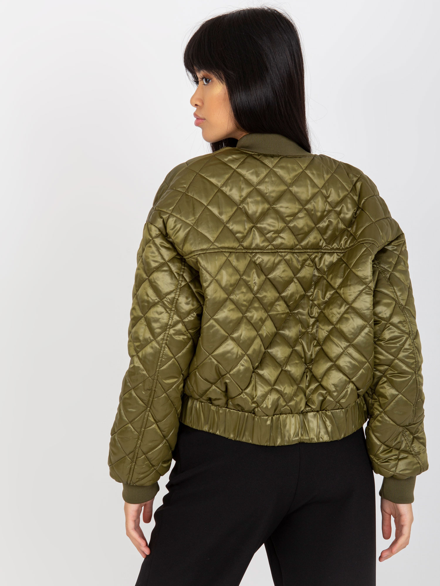 Khaki damska pikowana kurtka bomber z kieszeniami .