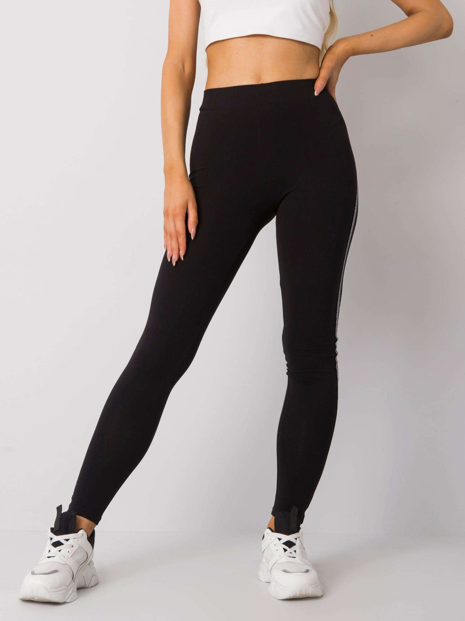 RUE PARIS Czarno-srebrne legginsy z lampasami.