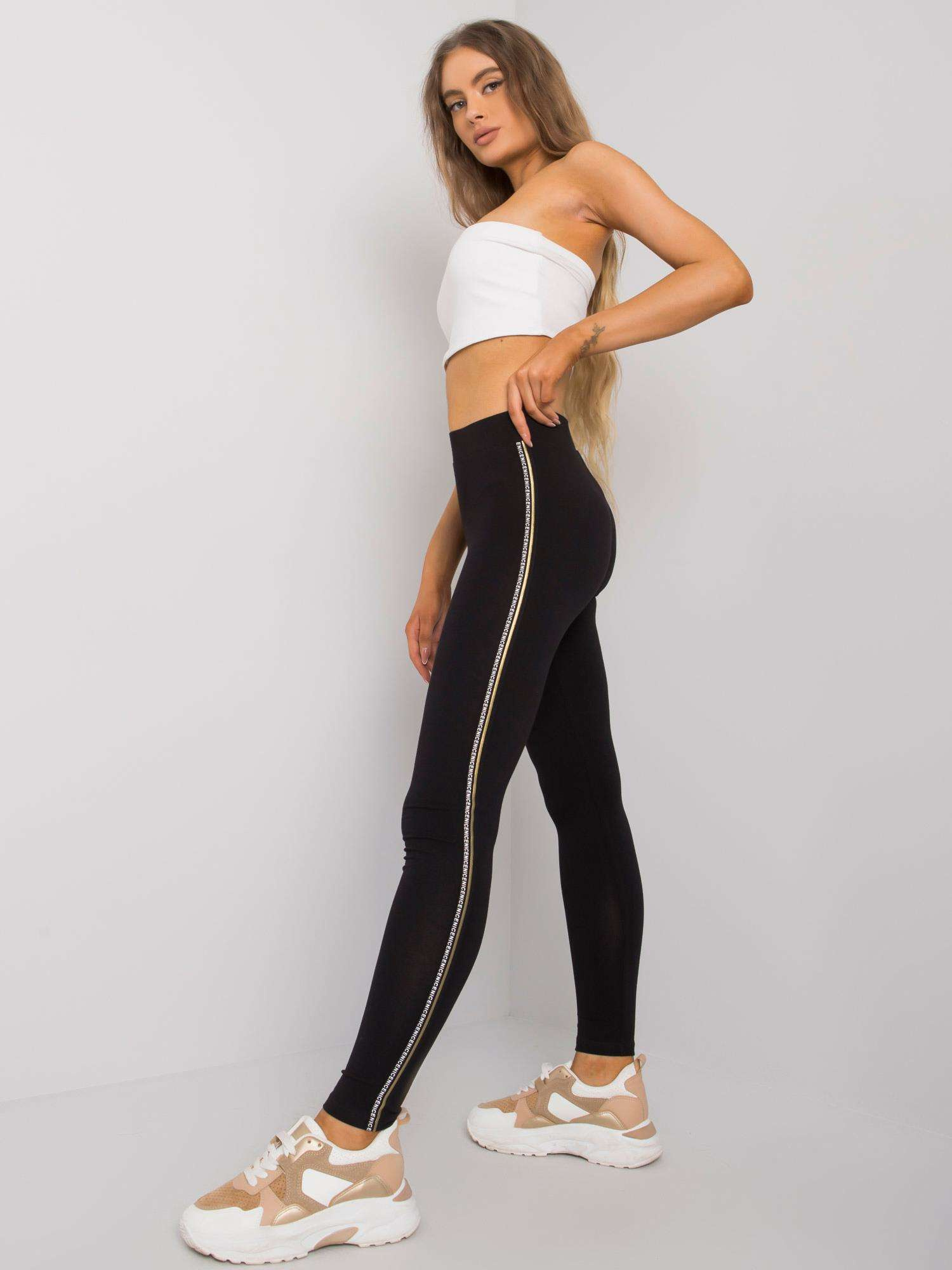 RUE PARIS Czarno-złote legginsy z lampasami.