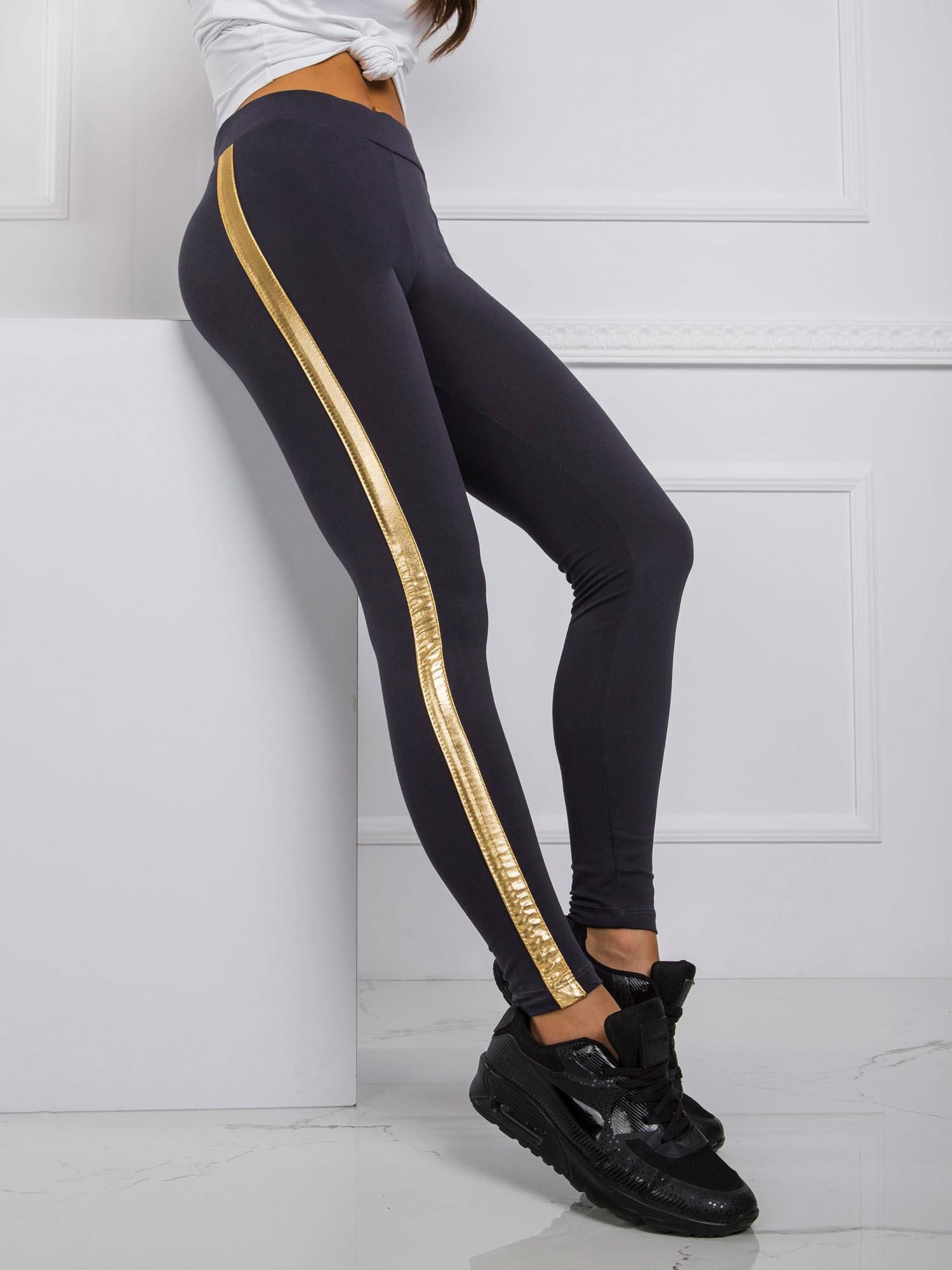 RUE PARIS Ciemnoszaro-złote legginsy.
