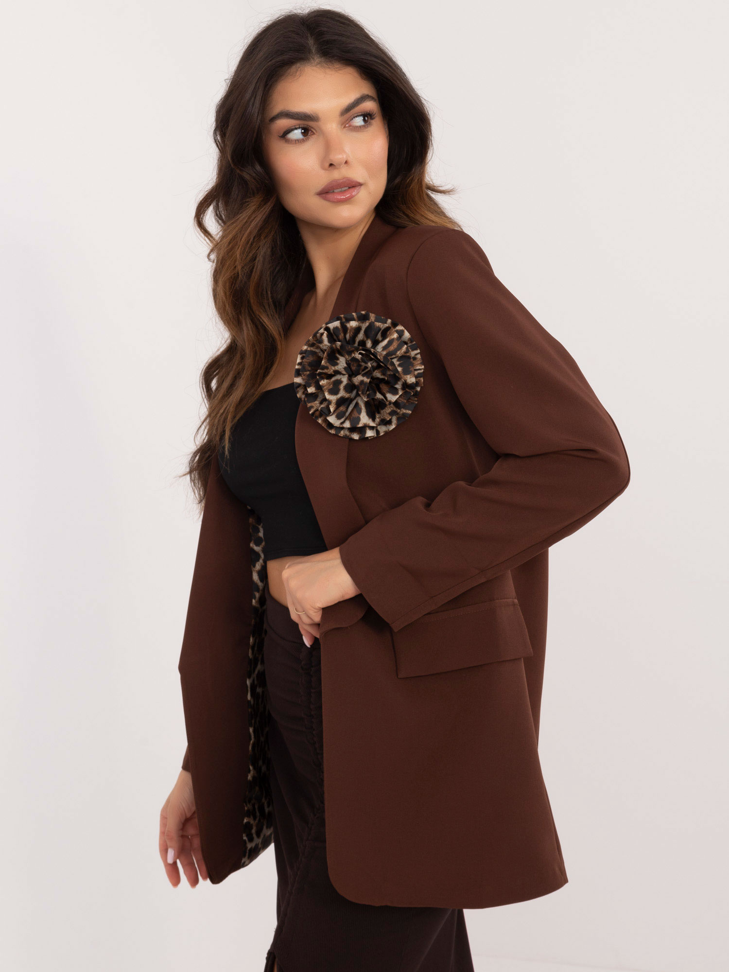 Wymiary marynarki w rozmiarze one size mierzone na płasko: szerokość pod pachami – 51 cm, długość całkowita – 74 cm, długość rękawa – 56 cm.