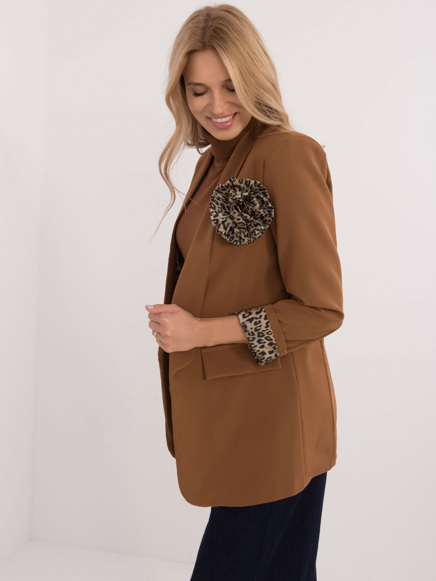 Wymiary marynarki w rozmiarze one size mierzone na płasko: szerokość pod pachami – 53 cm, długość rękawa – 52 cm, długość całkowita – 76 cm.
