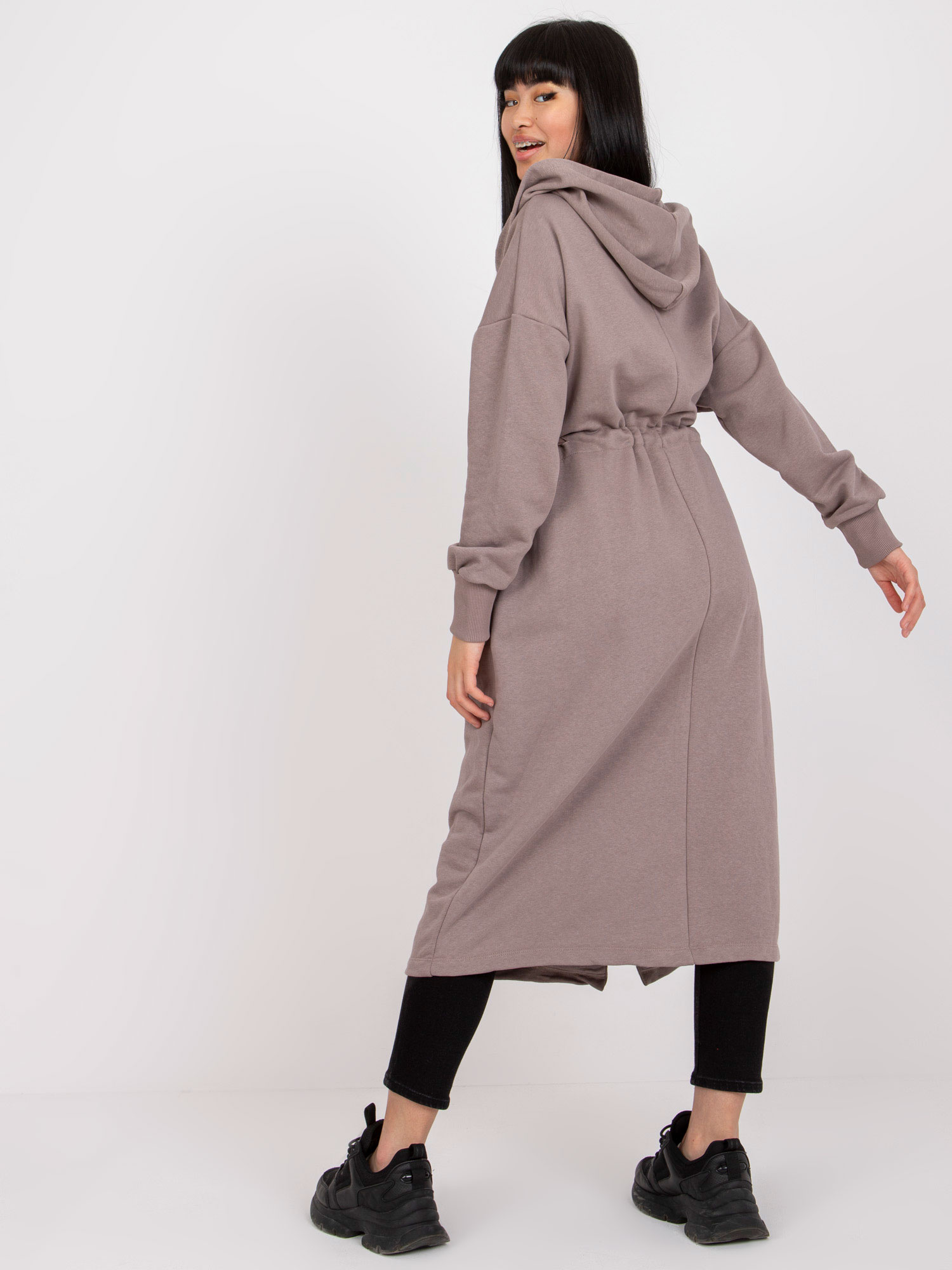 Wymiary bluzy w rozmiarze one size mierzone na płasko: szerokość pod pachami – 57 cm, długość całkowita – 116 cm, długość rękawa – 58 cm.