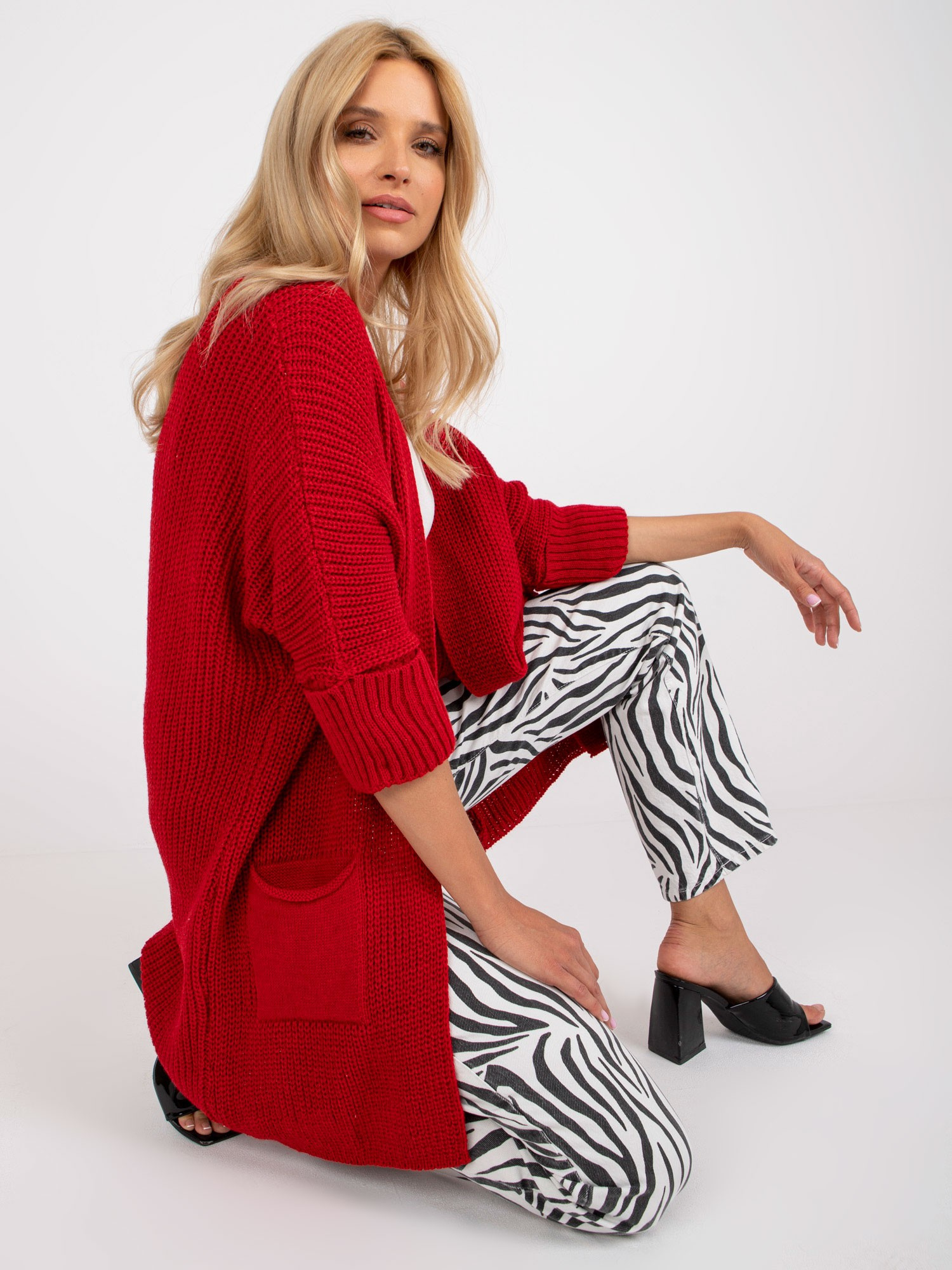 Wymiary swetra w rozmiarze one size mierzone na płasko: szerokość pod pachami – 71 cm, długość całkowita – 80 cm, długość rękawa – 41 cm.