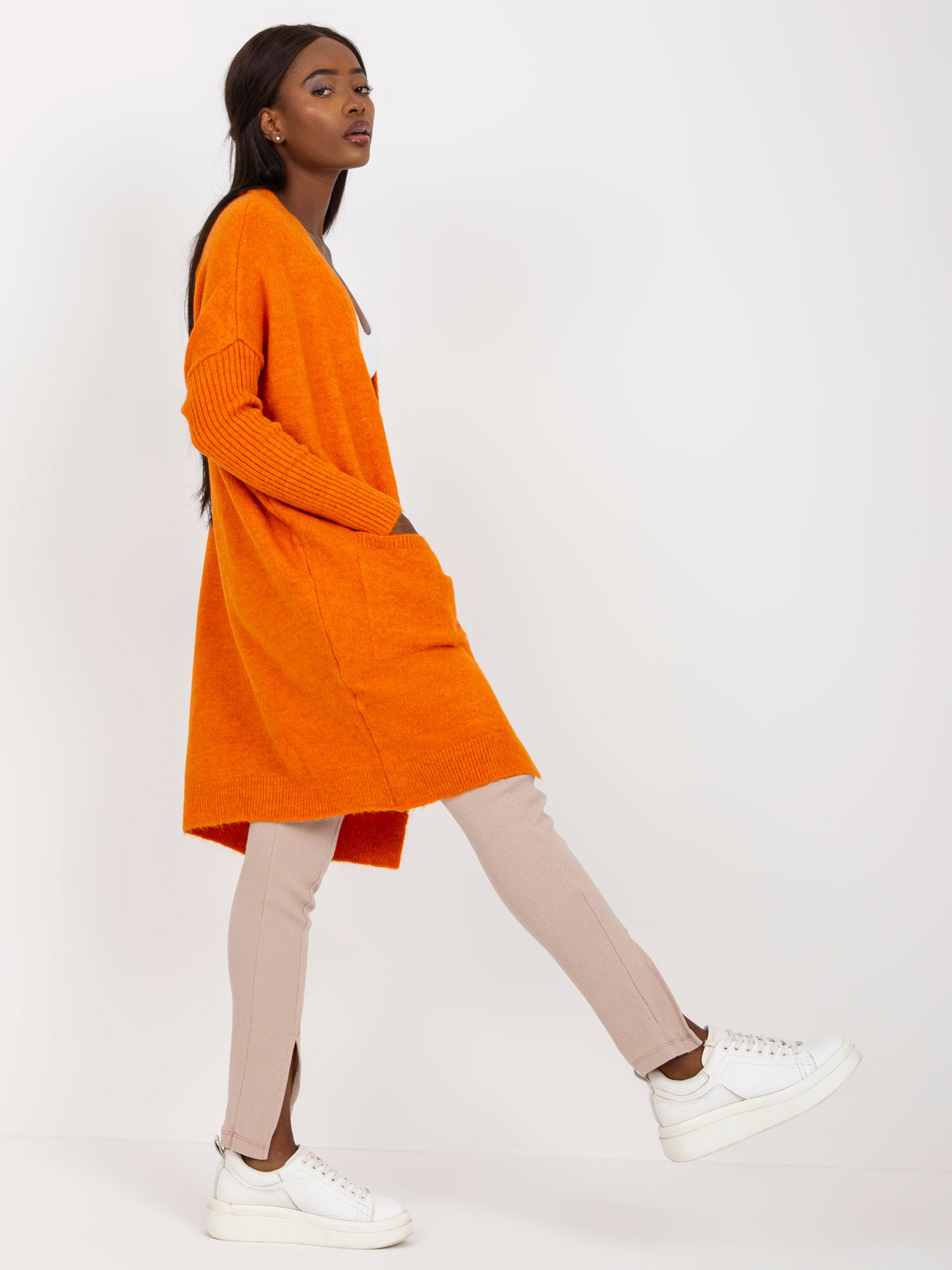 Modelka ma na sobie rozmiar 36. Wymiary modelki: wzrost 174 cm, biust 92 cm, talia 62 cm, biodra 90 cm.