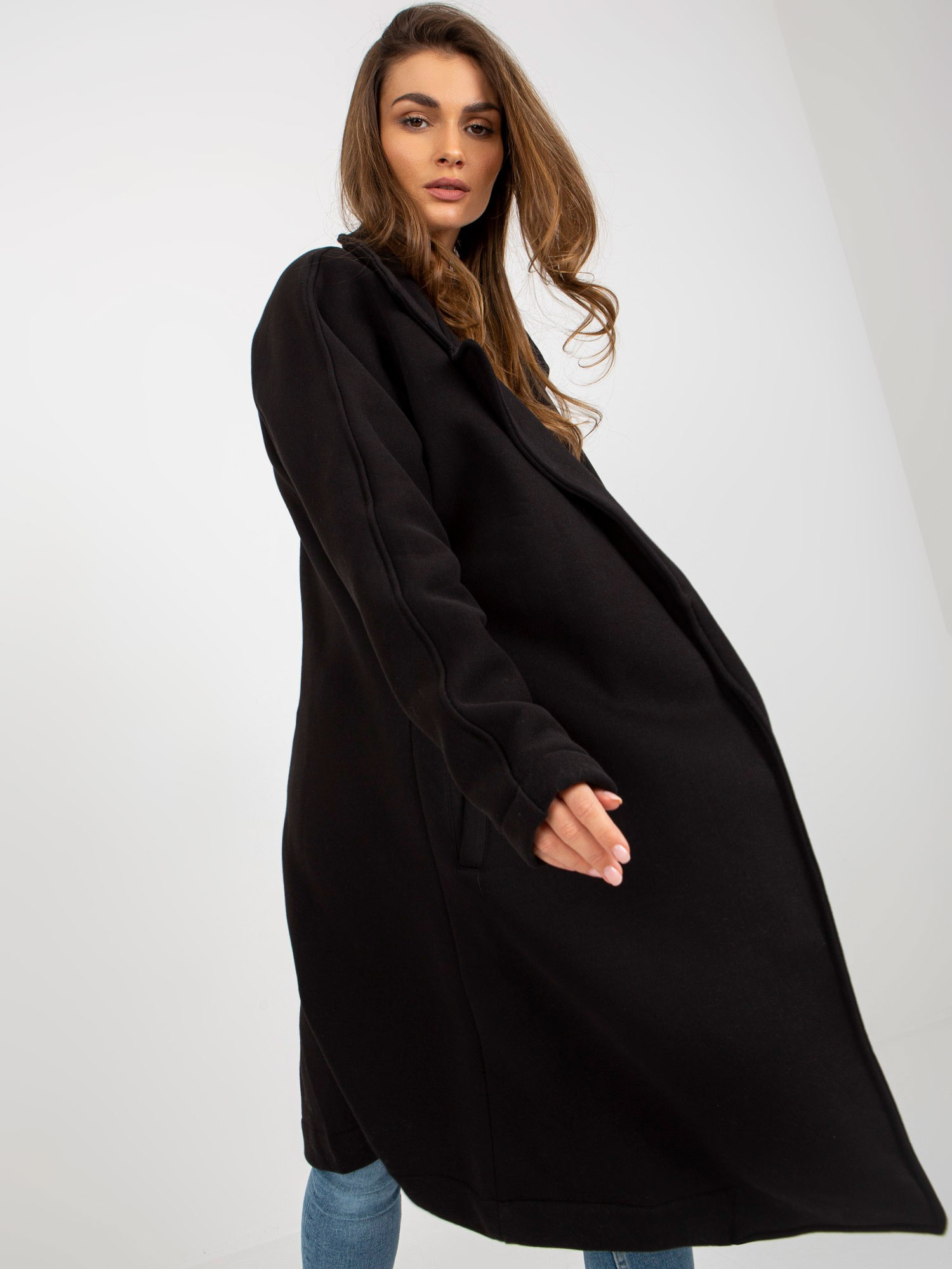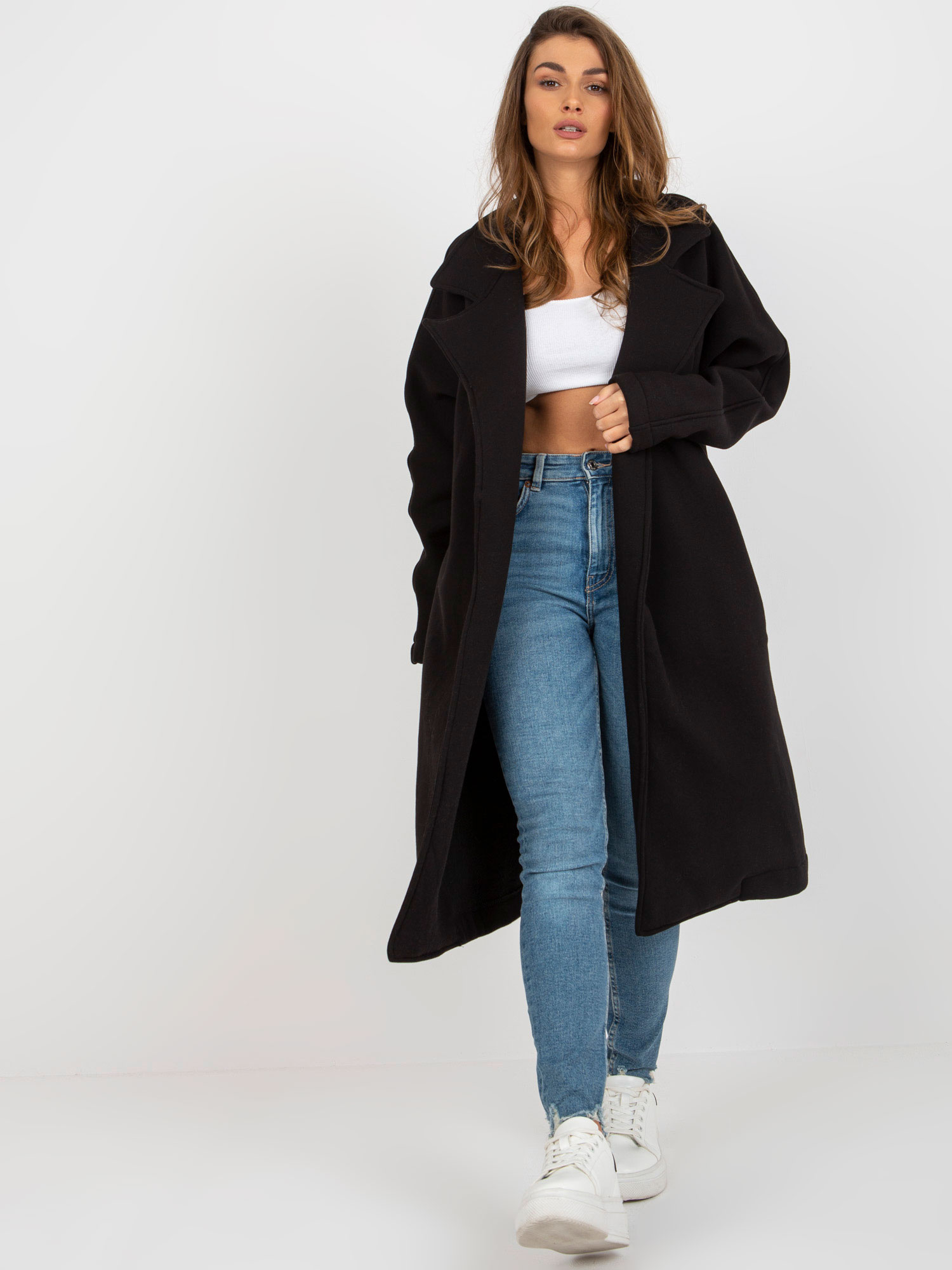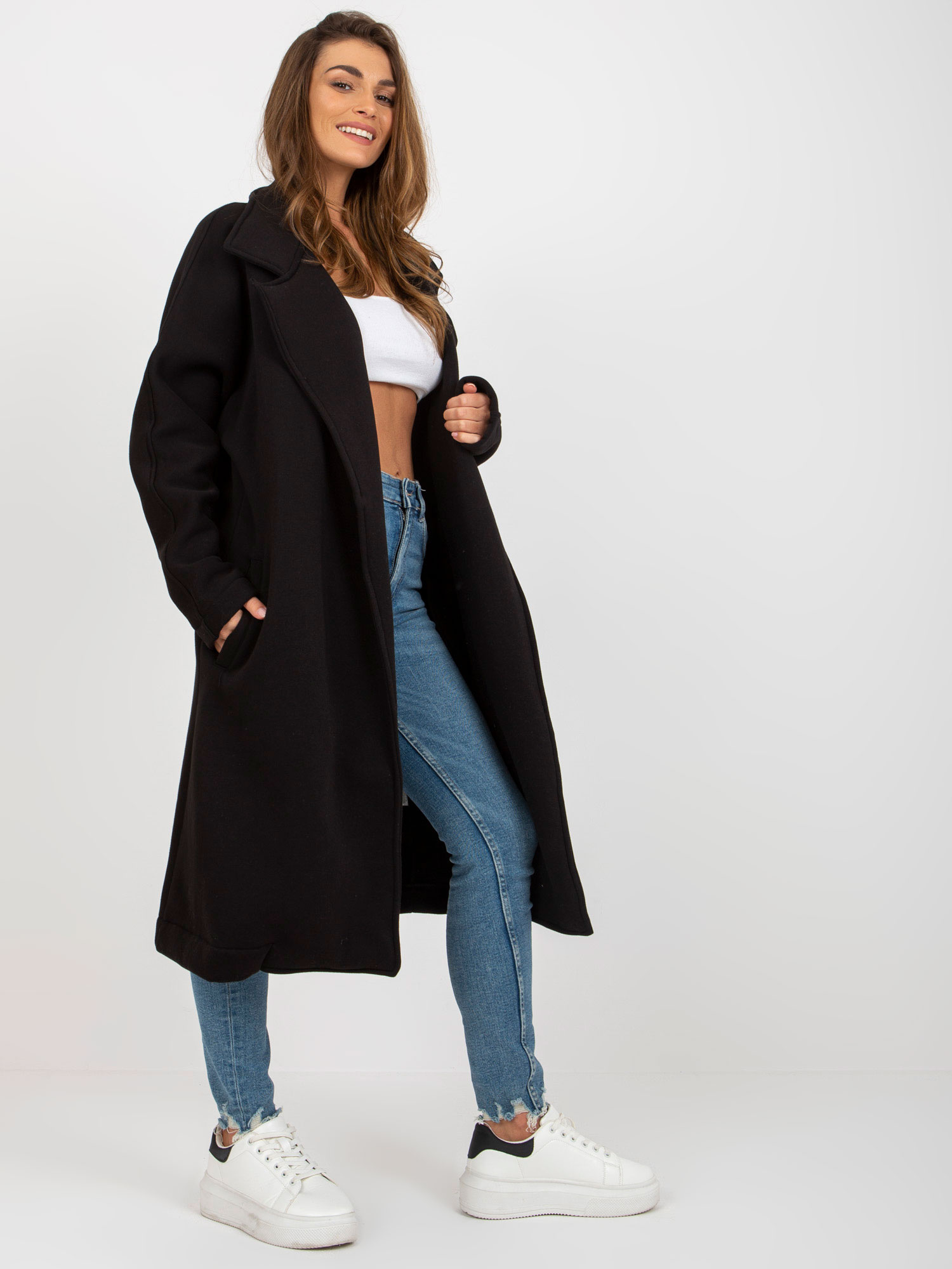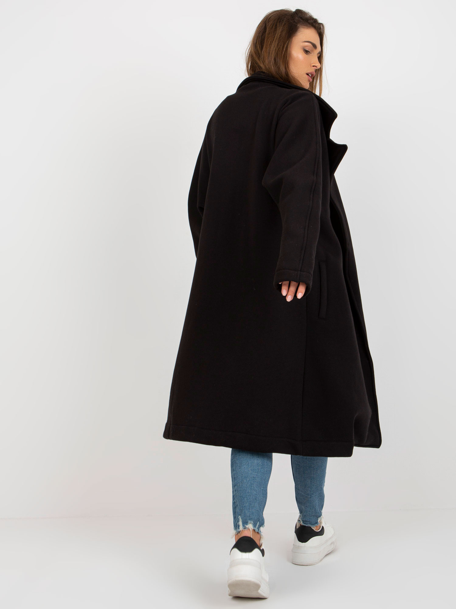 Wymiary płaszcza w rozmiarze one size mierzone na płasko: szerokość pod pachami – 69 cm, długość rękawa – 58 cm, długość całkowita – 106 cm.