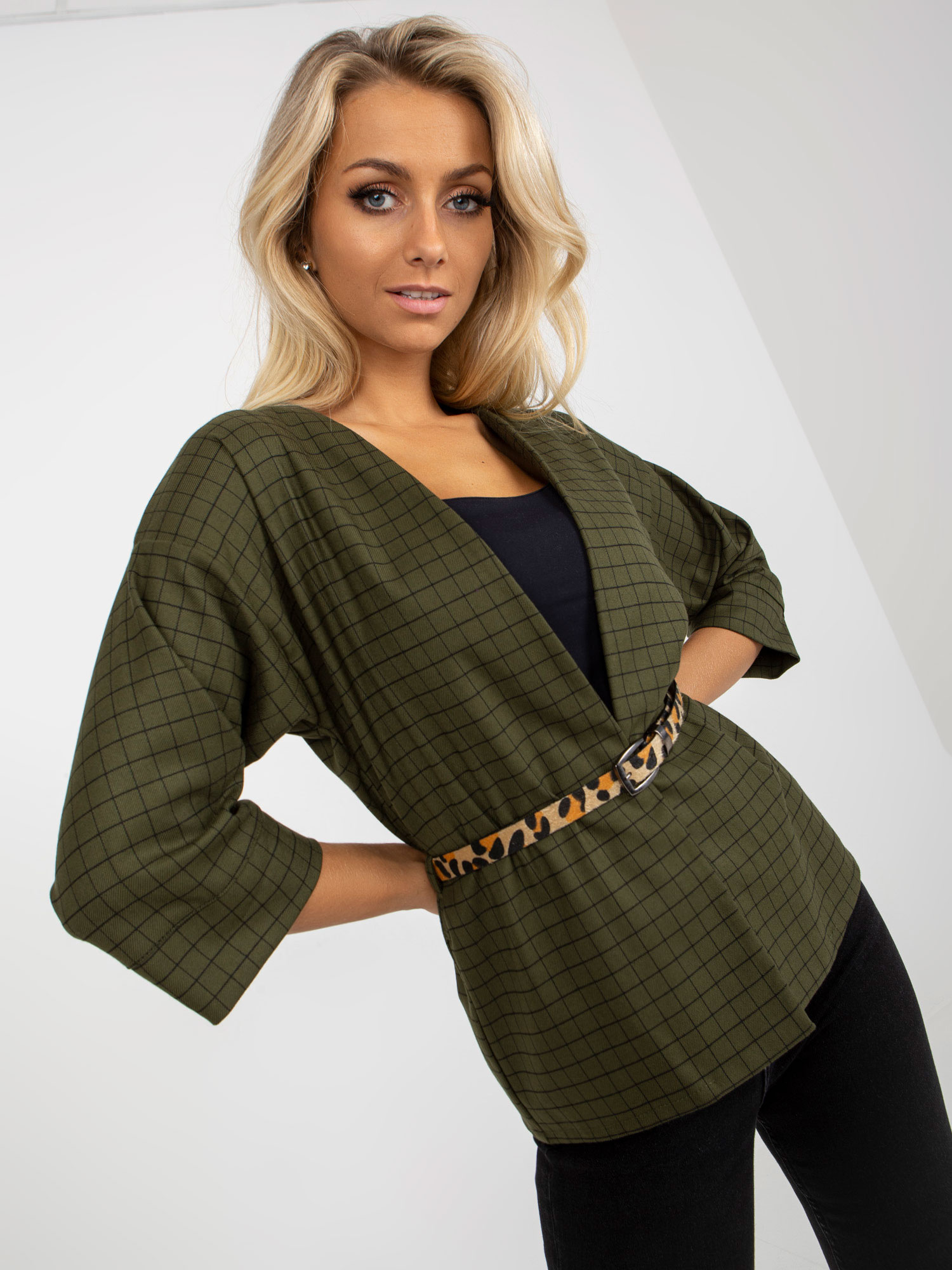 Wymiary narzutki w rozmiarze 36 mierzone na płasko: szerokość pod pachami – 54 cm, długość rękawa – 40 cm, długość całkowita – 63 cm.