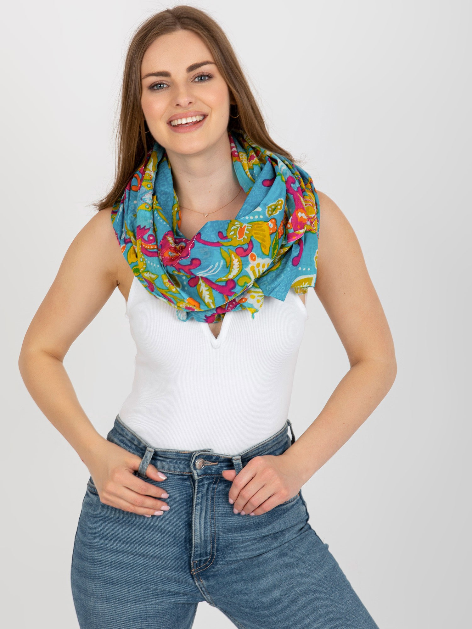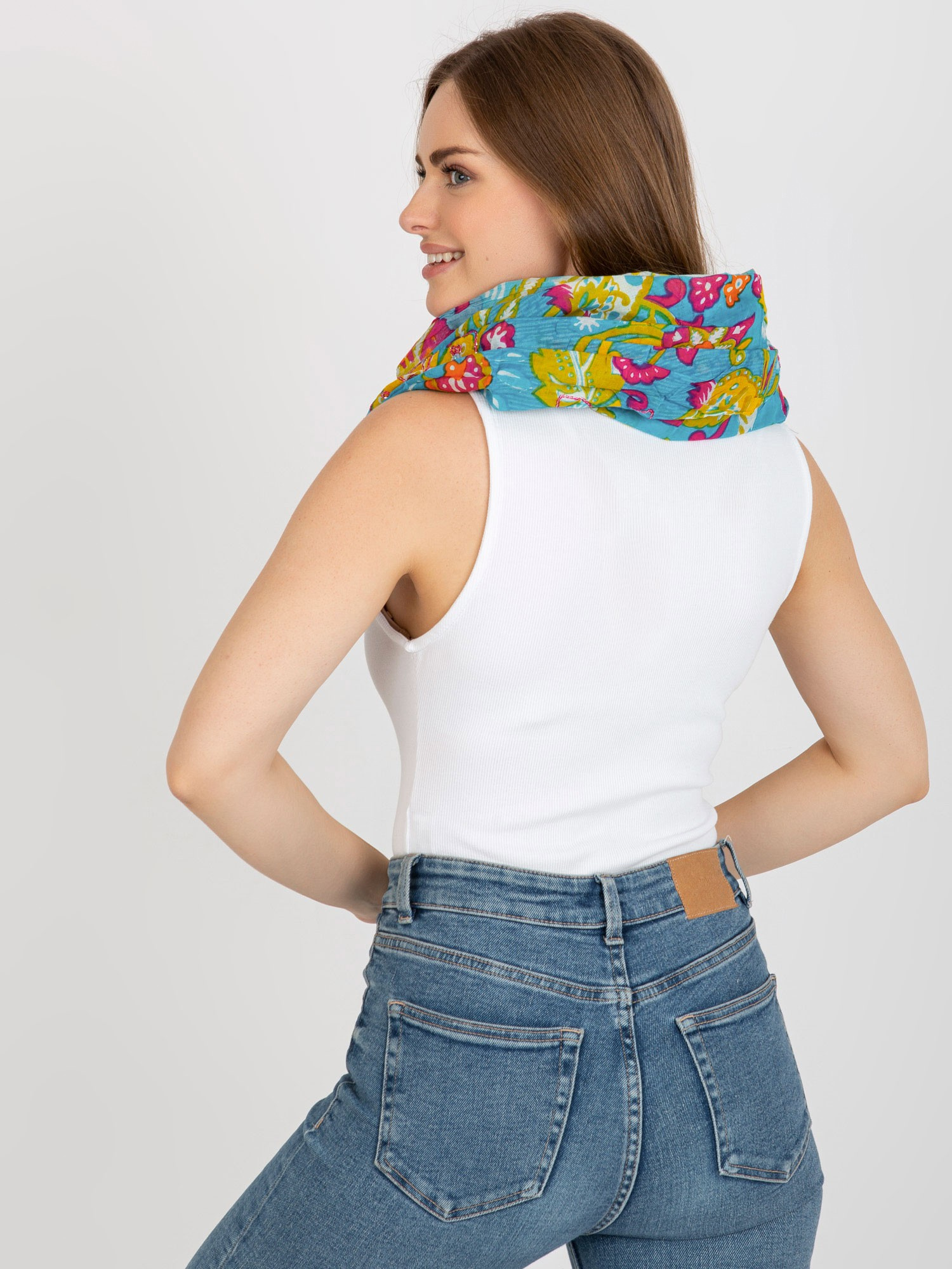 Niebieska wzorzysta chusta z bawełny .