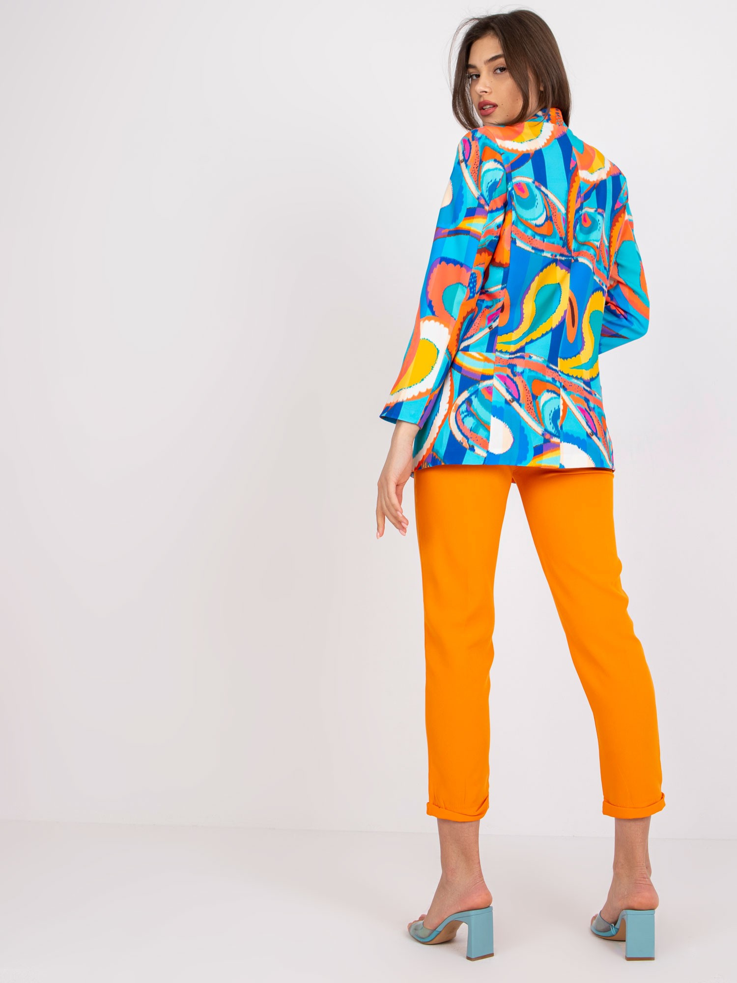 Modelka ma na sobie rozmiar S. Wymiary modelki: wzrost 174 cm, biust 82 cm, talia 62 cm, biodra 89 cm.