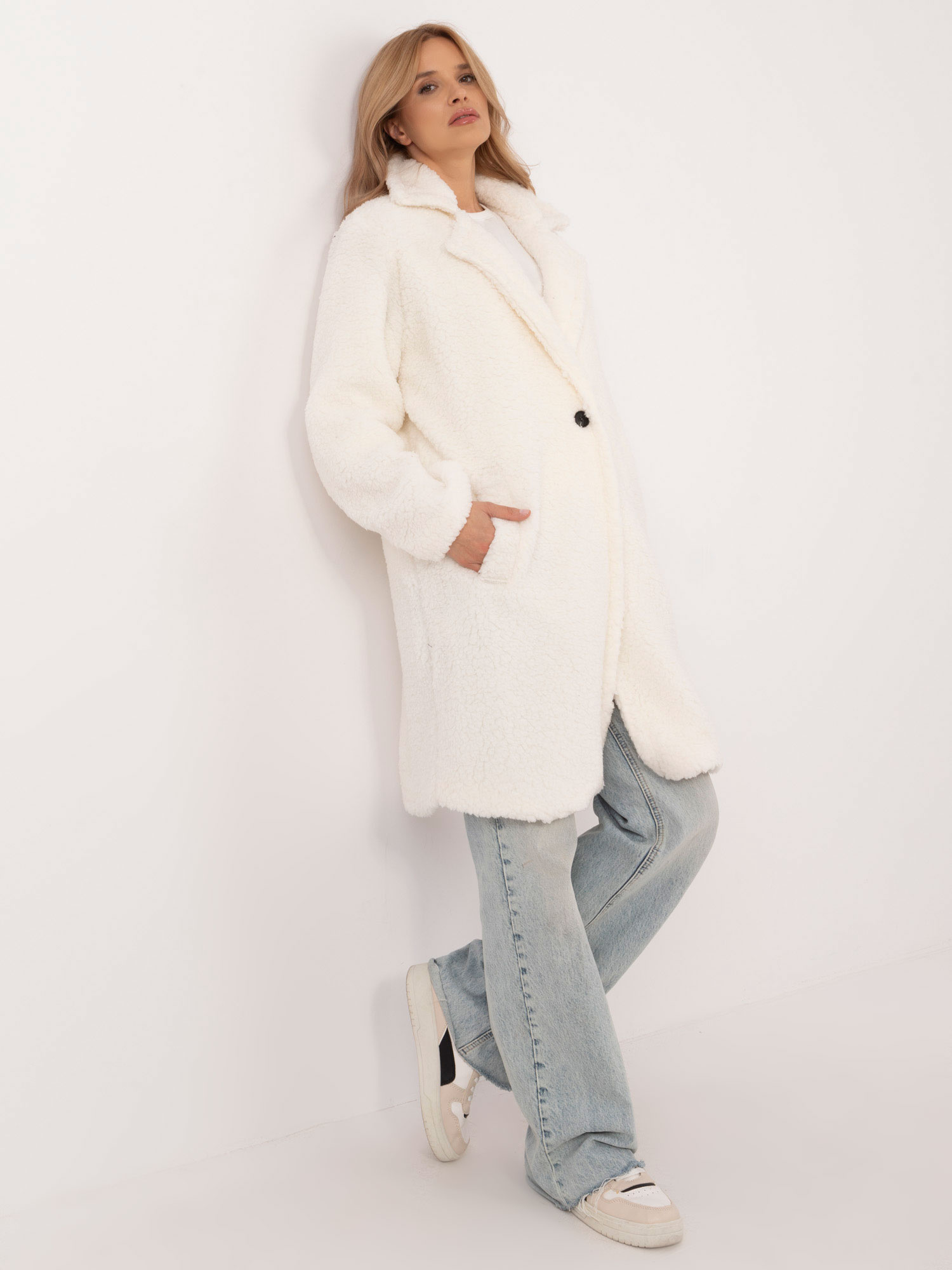 Wymiary płaszcza w rozmiarze one size mierzone na płasko: szerokość pod pachami – 60 cm, długość rękawa – 64 cm (od szwu), szerokość w biodrach – 62 cm, długość całkowita – 98 cm.
