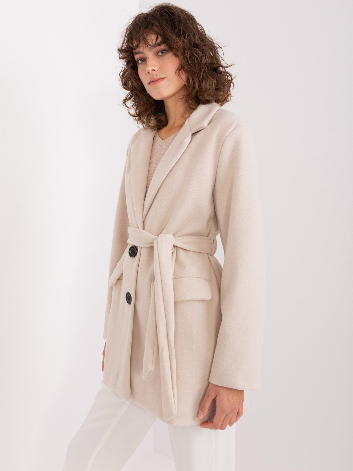 Jasnobeżowy krótki płaszcz z paskiem OCH BELLA .