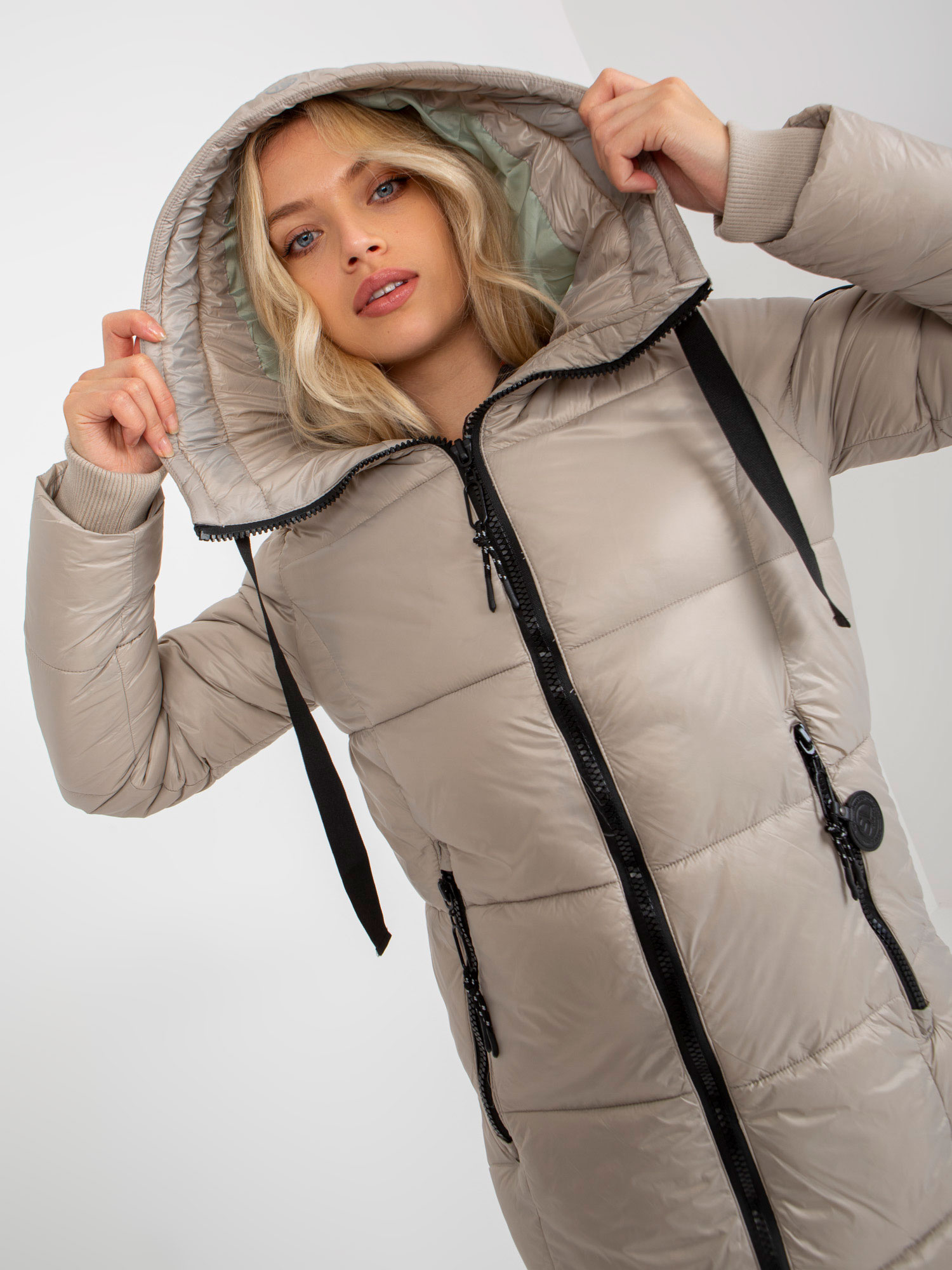 Jasnobeżowa długa kurtka zimowa z kapturem SUBLEVEL .
