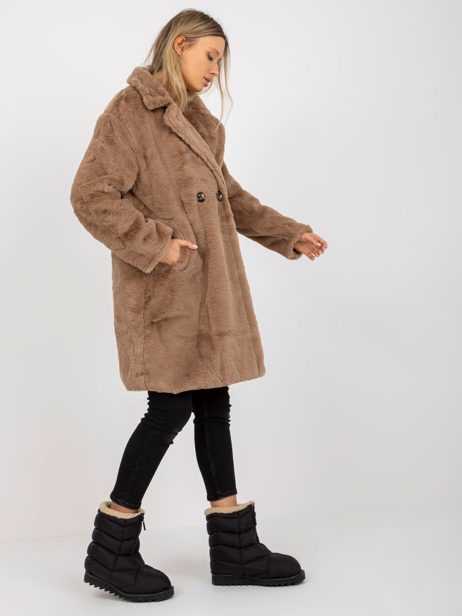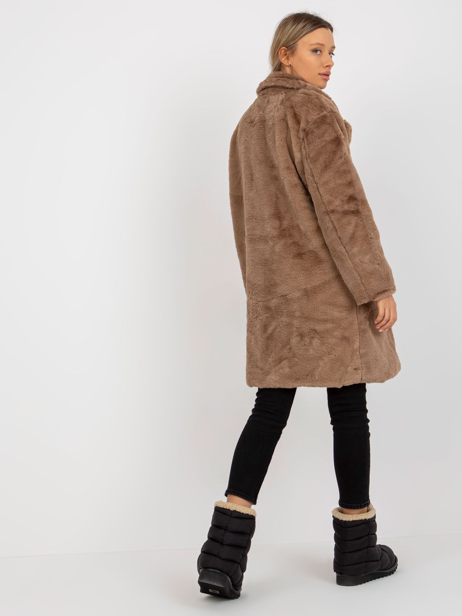 Ciemnobeżowy płaszcz futrzany z kołnierzem OCH BELLA .