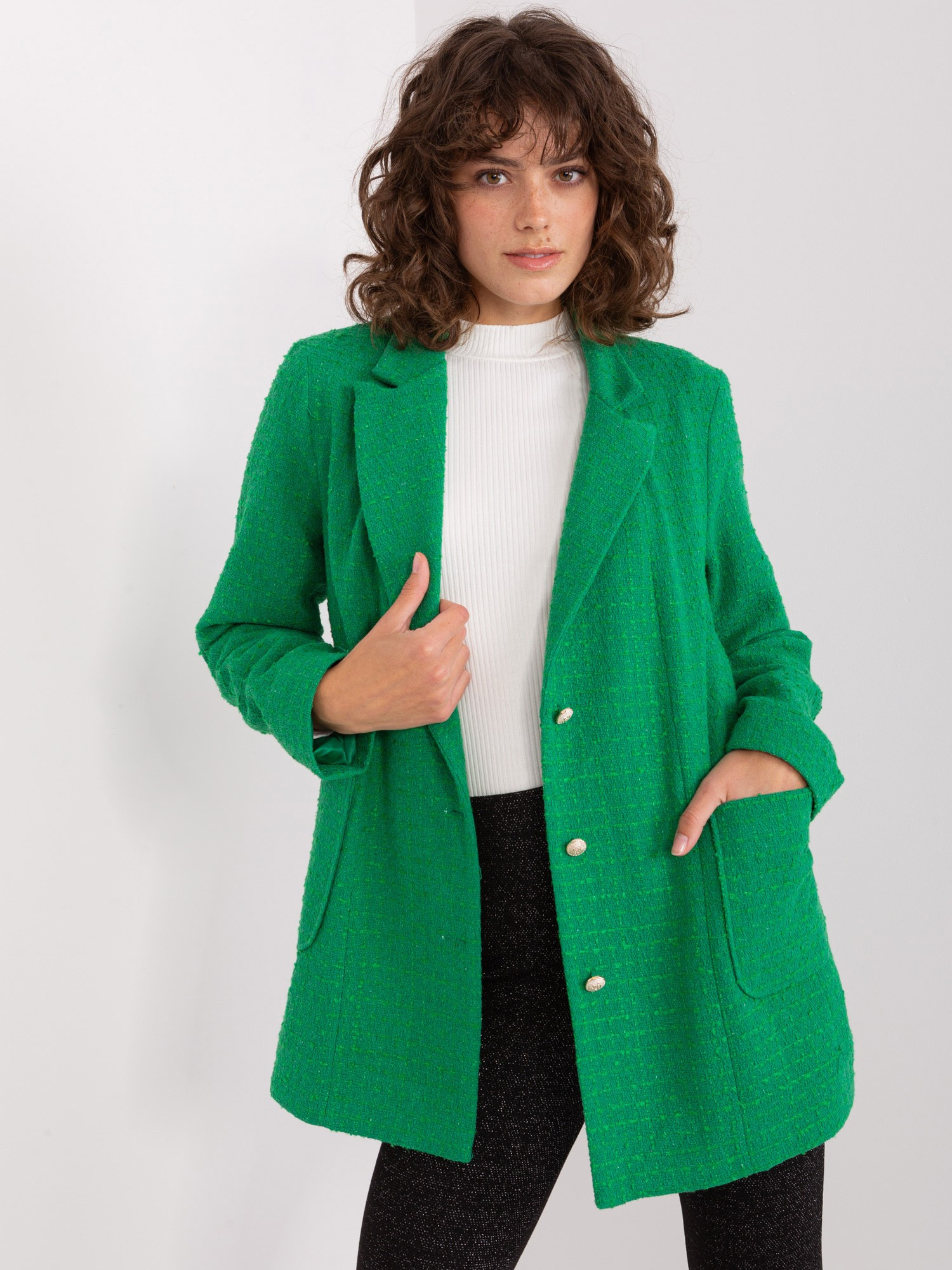 Wymiary marynarki w rozmiarze S/M mierzone na płasko: szerokość pod pachami – 58 cm, długość całkowita – 74 cm, długość rękawa – 62 cm.