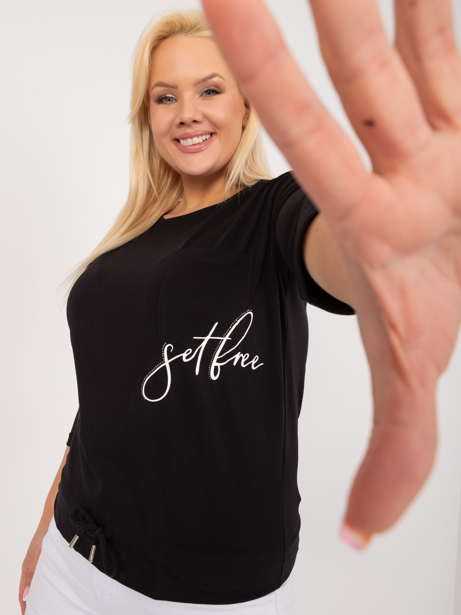 - Modelka: Modelka ma na sobie rozmiar one size. Wymiary modelki: wzrost 175 cm, biust 90 cm, talia 66 cm, biodra 94 cm
