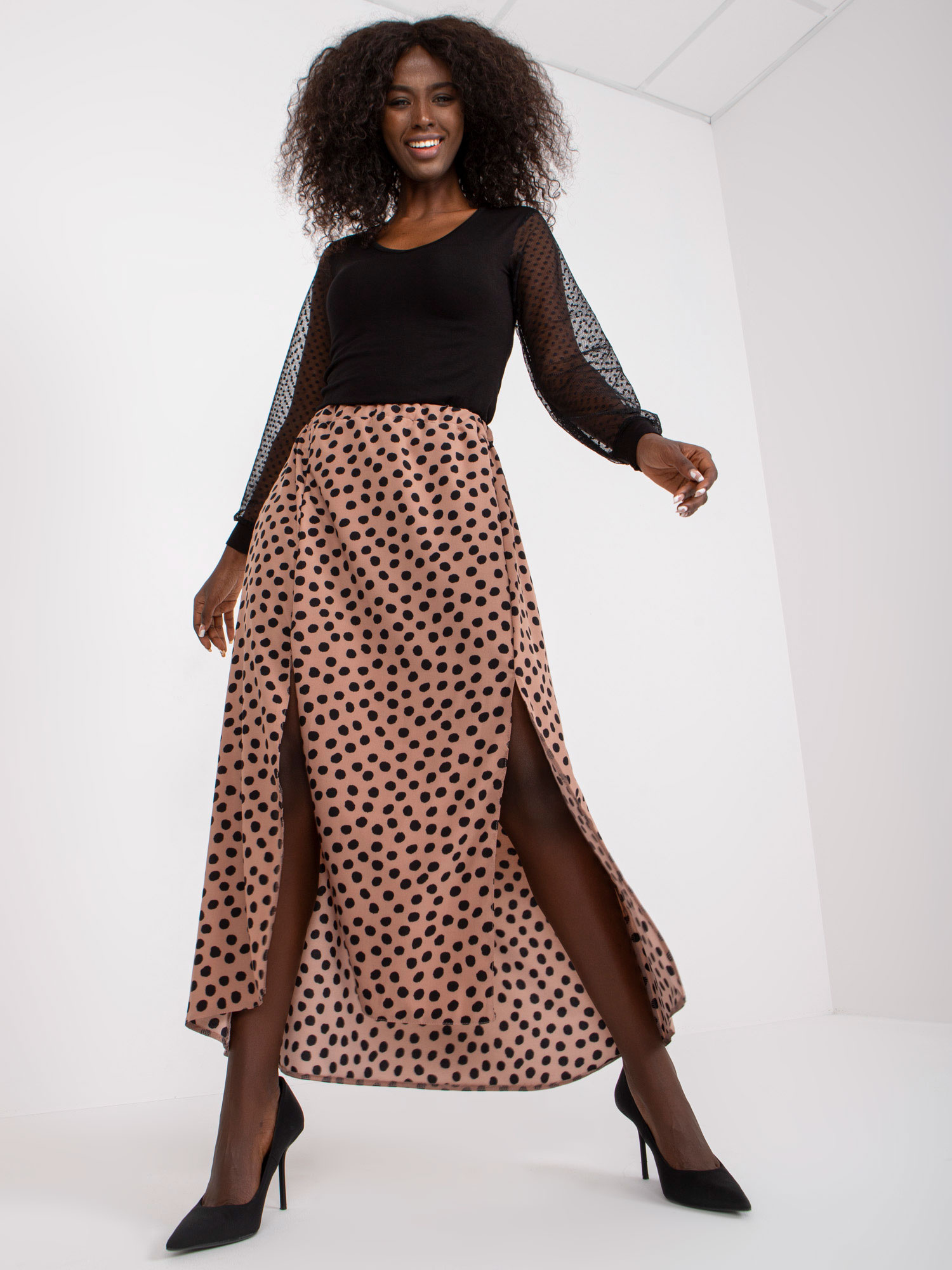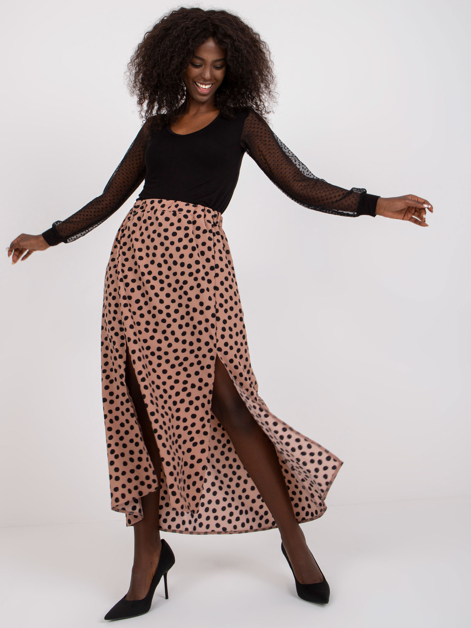 Wymiary spódnicy w rozmiarze S mierzone na płasko: szerokość w pasie – 35 cm, długość całkowita (przód) – 78 cm, długość całkowita (tył) – 89 cm.