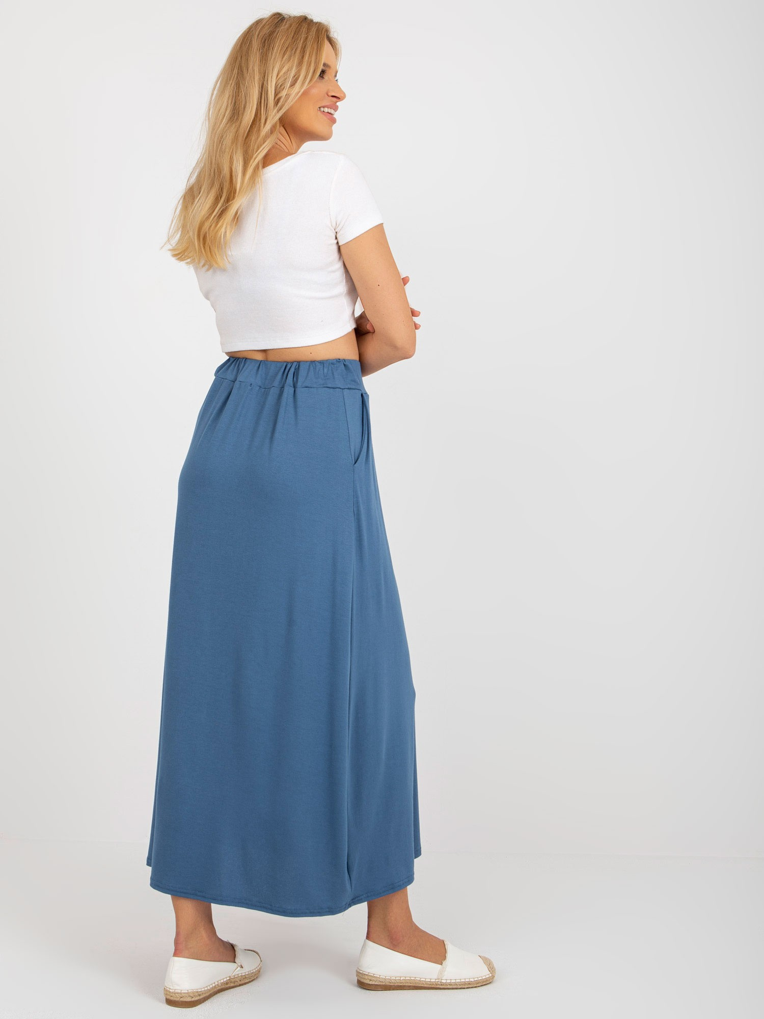 Ciemnoniebieska spódnica basic z wiskozy RUE PARIS .