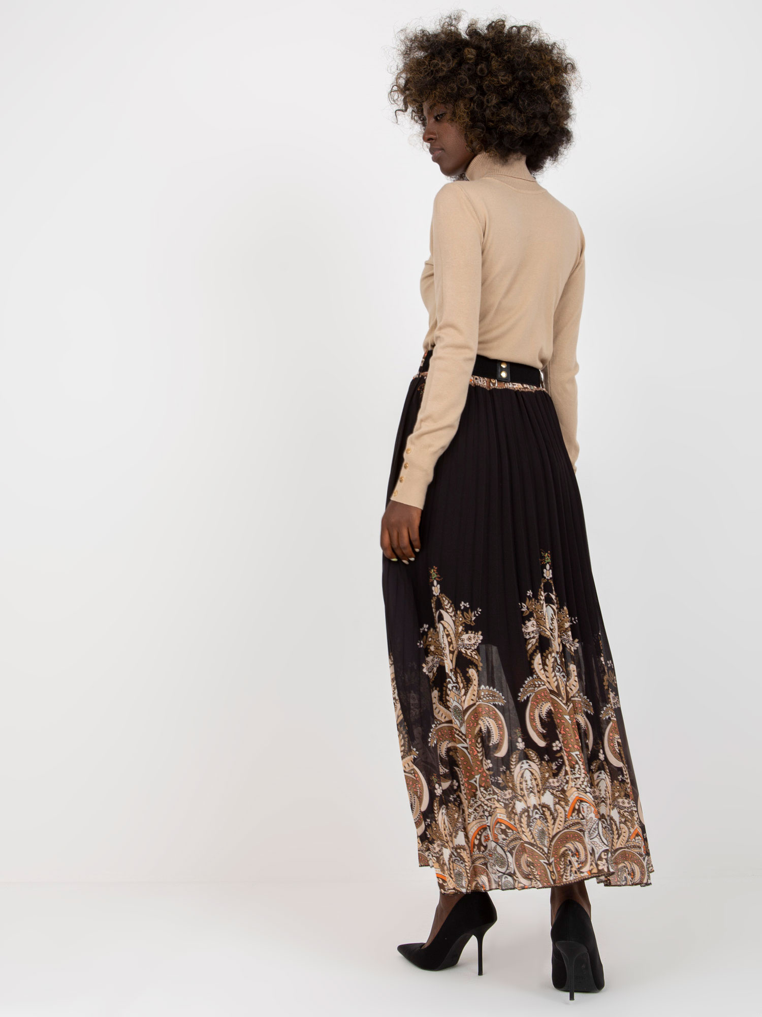 Czarna maxi spódnica plisowana z paskiem .