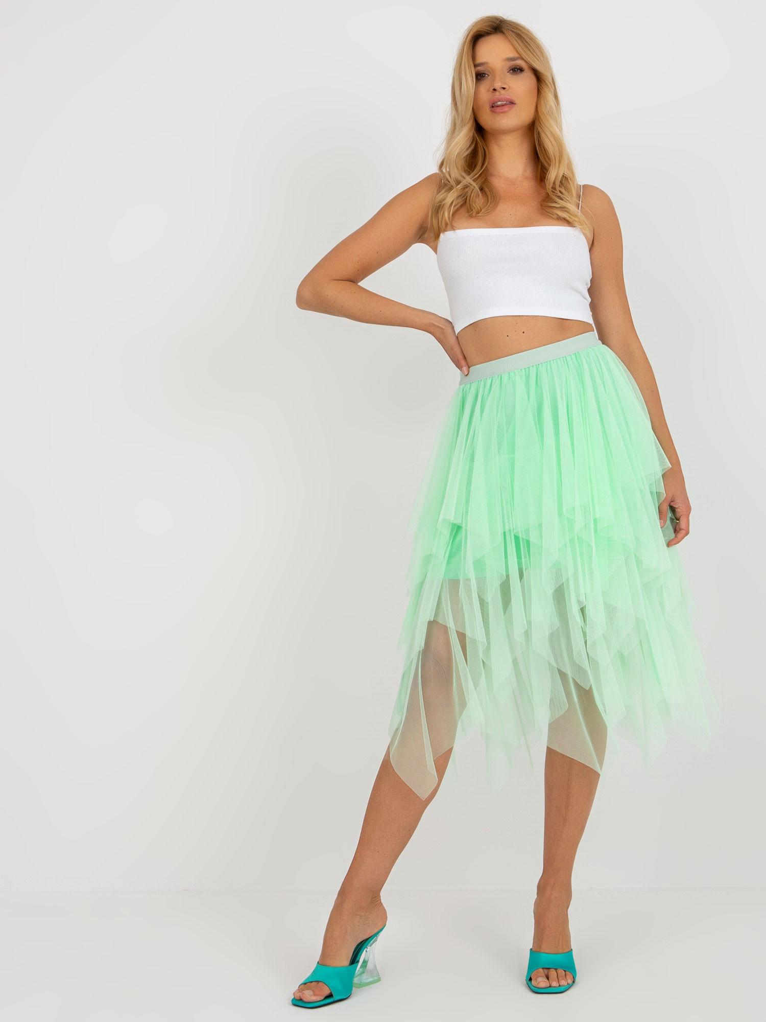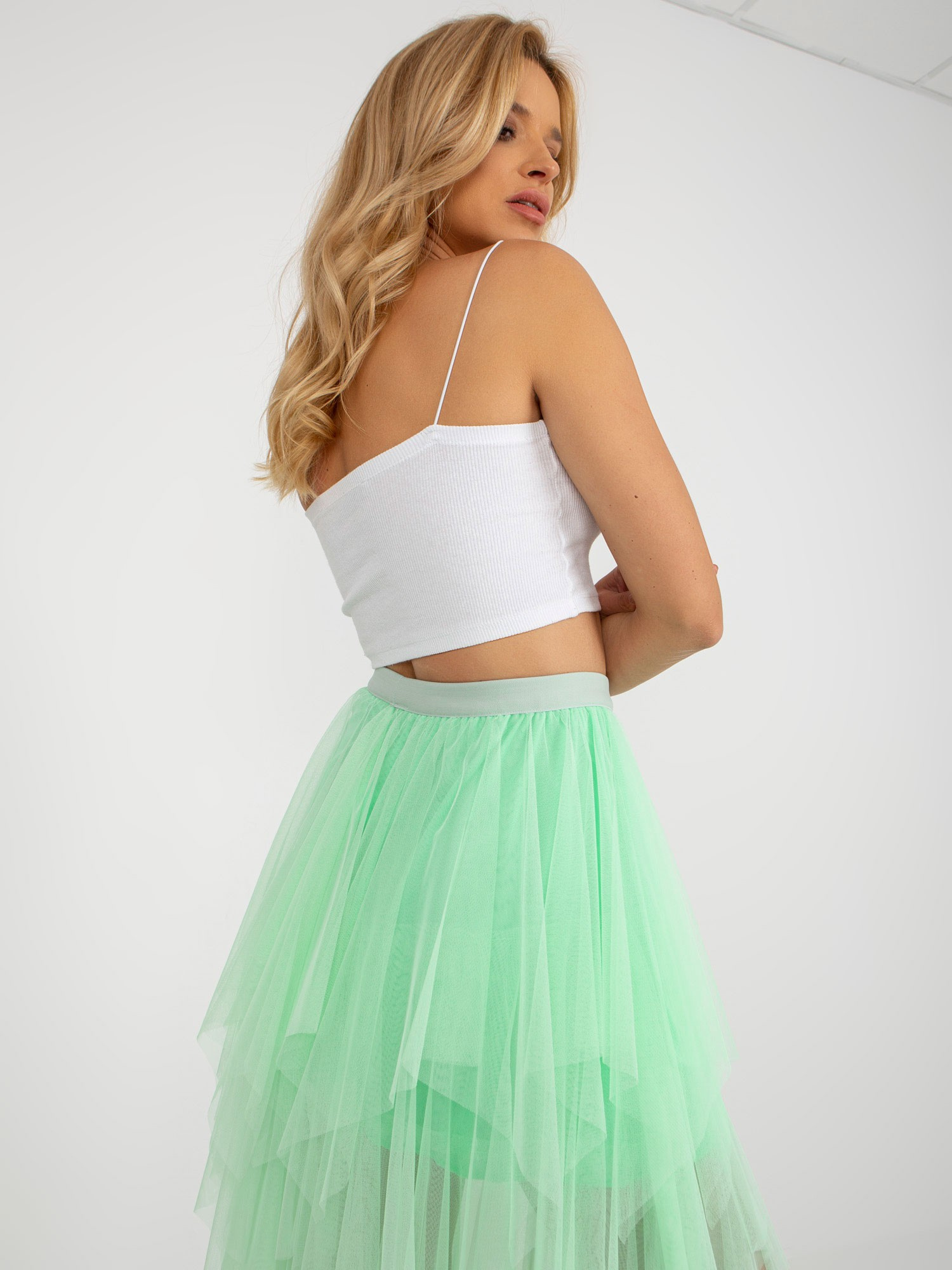 Jasnozielona midi spódnica rozkloszowana z tiulu .