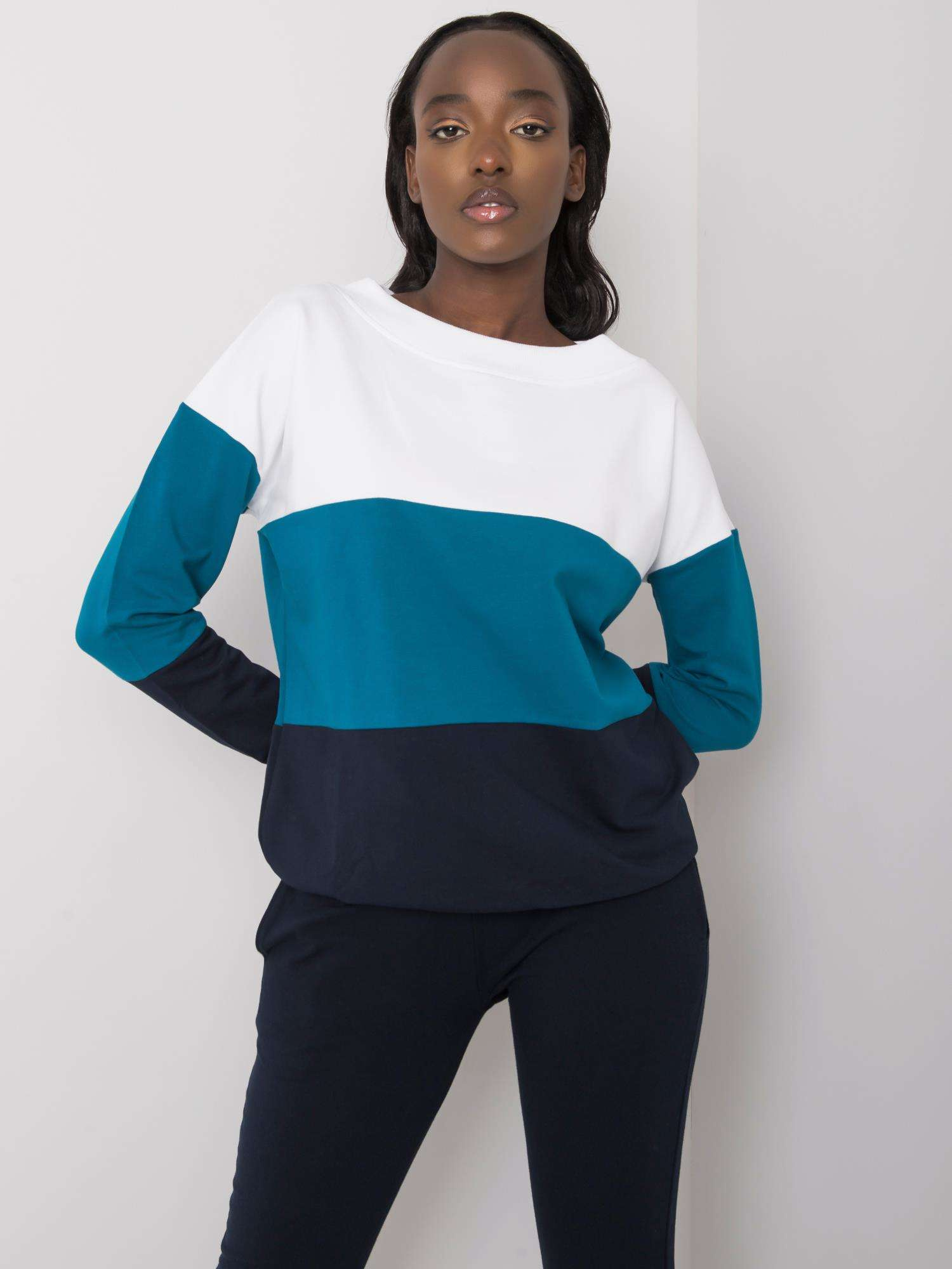 Modelka ma na sobie rozmiar S. Wymiary modelki: wzrost 170 cm, biust 93 cm, talia 66 cm, biodra 93 cm.