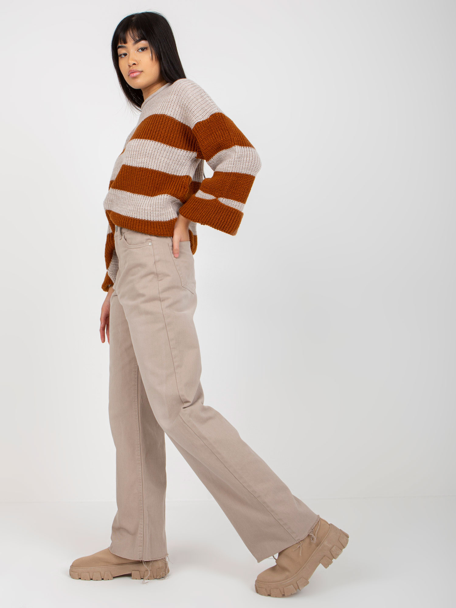 Ciemnobeżowe damskie spodnie jeansowe wide leg FRESH MADE .