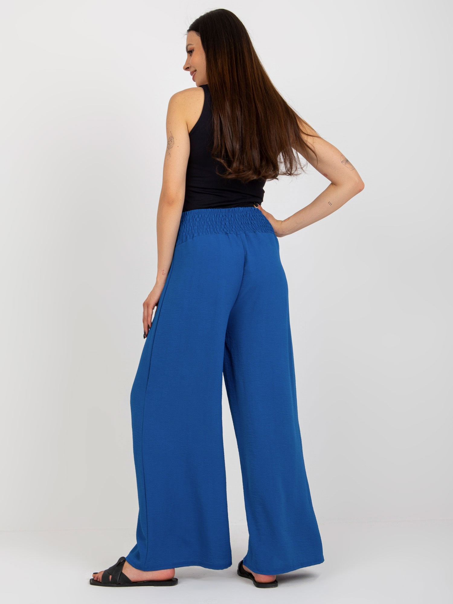Ciemnoniebieskie spodnie z materiału bez zapięcia .