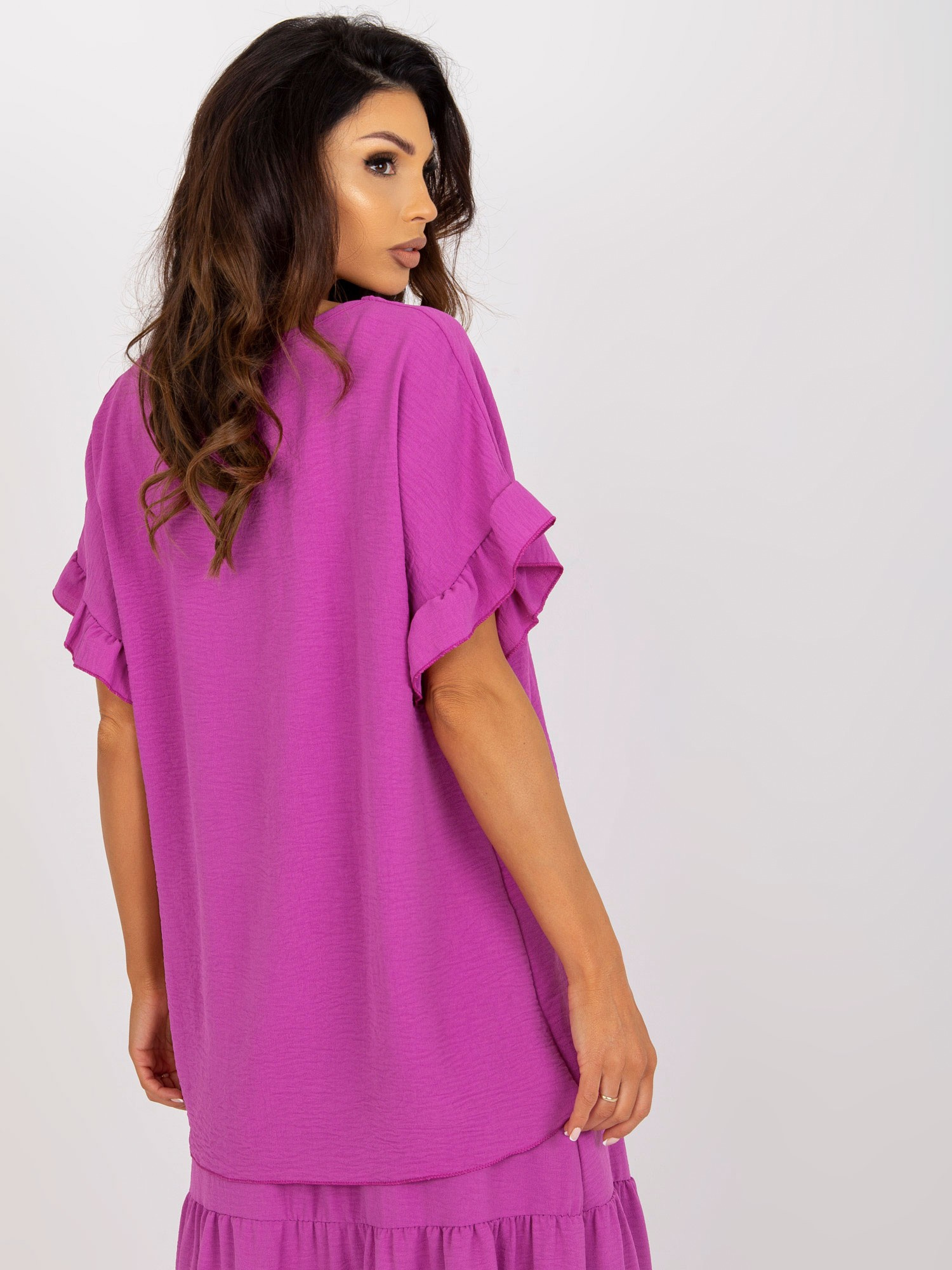 Modelka ma na sobie rozmiar S. Wymiary modelki: wzrost 175 cm, biust 84 cm, talia 61 cm, biodra 91 cm.