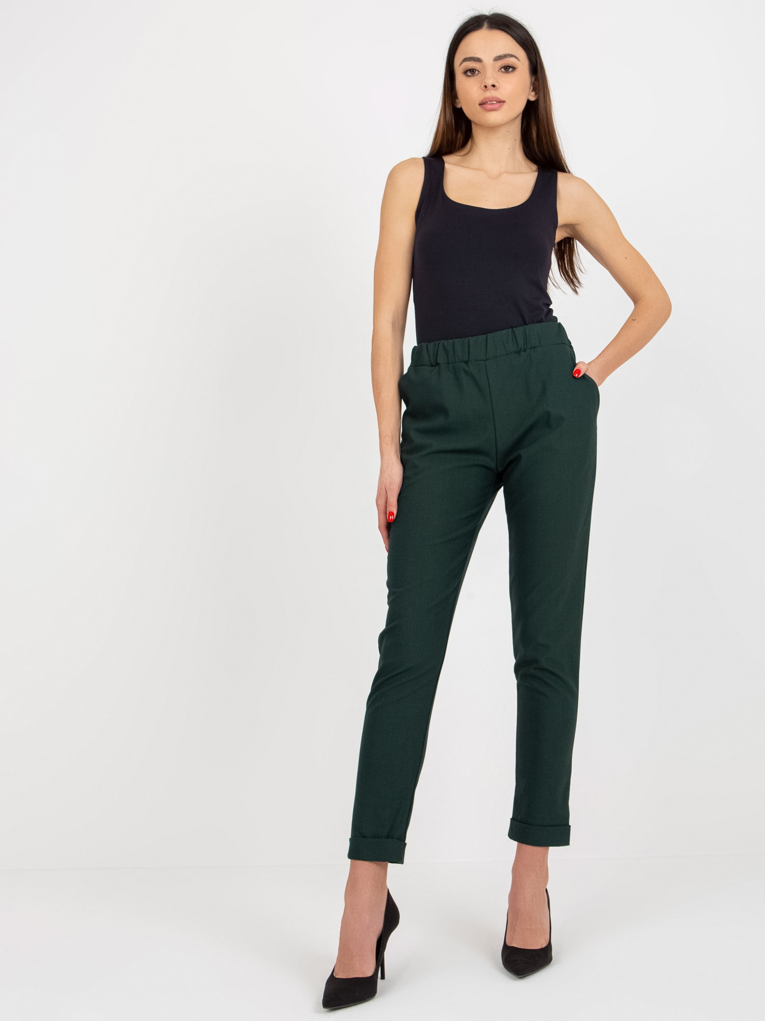 Ciemnozielone materiałowe spodnie od garnituru bez zapięcia .