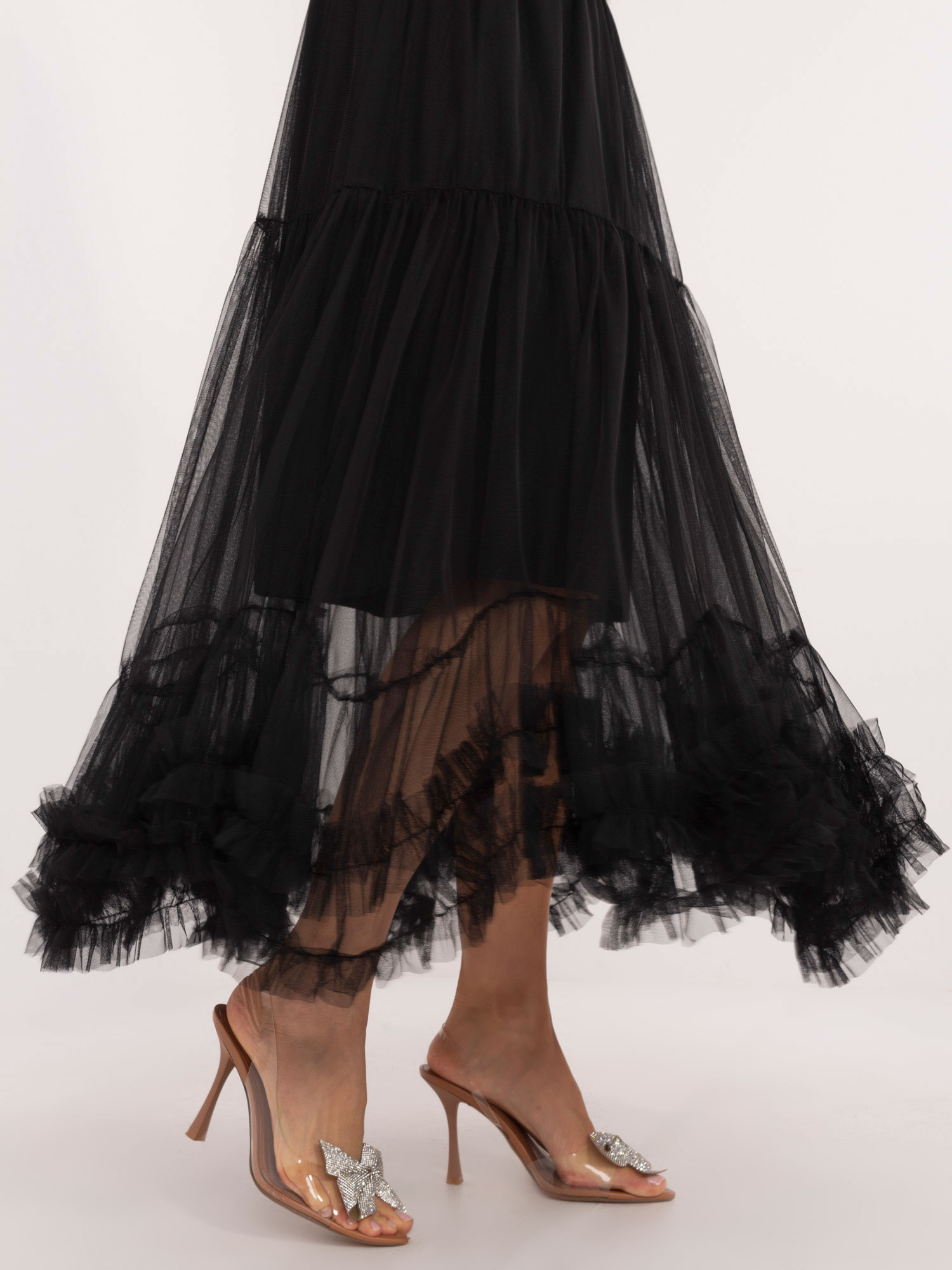 Modelka ma na sobie rozmiar 36. Wymiary modelki: wzrost 176 cm, biust 86 cm, talia 60 cm, biodra 88 cm.