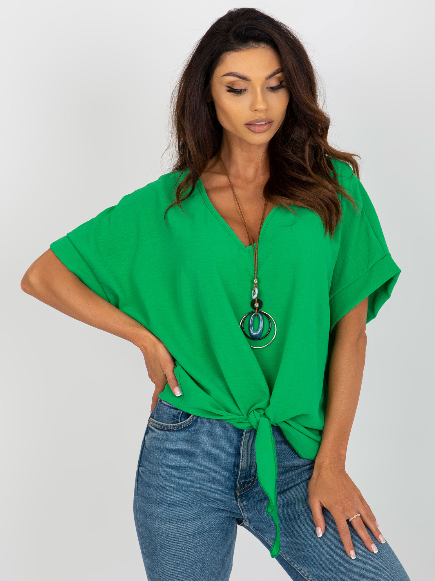 - Modelka: Modelka ma na sobie rozmiar one size. Wymiary modelki: wzrost 173 cm, biust 85 cm, talia 62 cm, biodra 95 cm