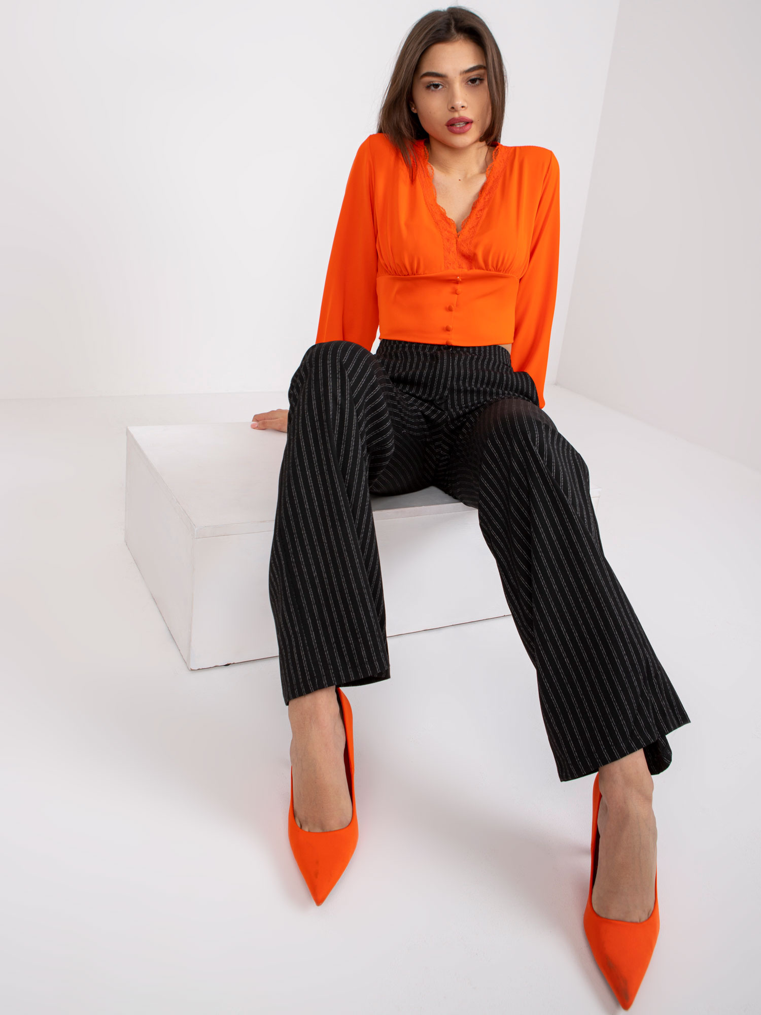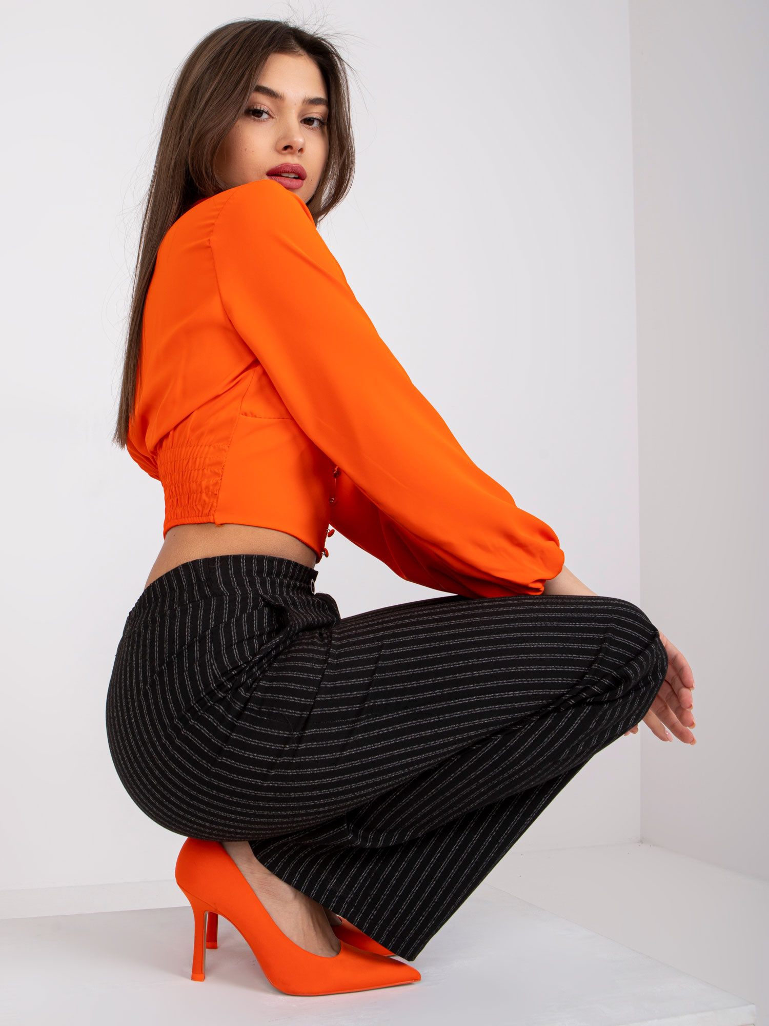 Modelka ma na sobie rozmiar 36. Wymiary modelki: wzrost 172 cm, biust 88 cm, talia 61 cm, biodra 92 cm.