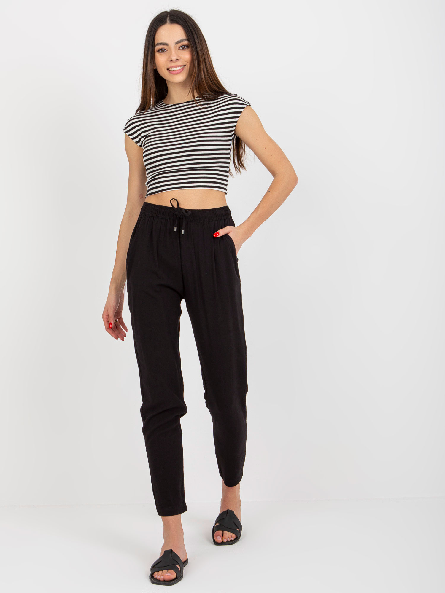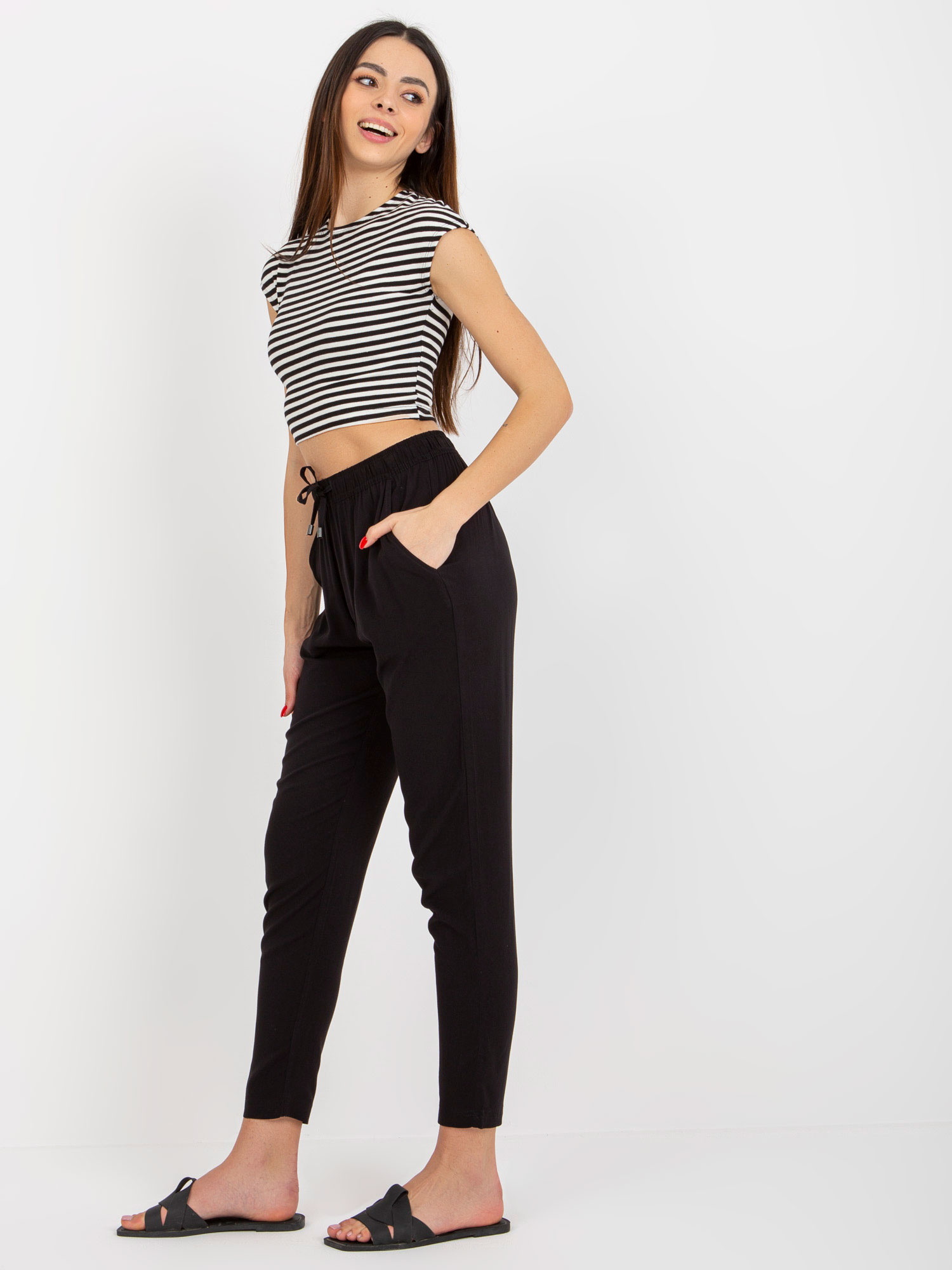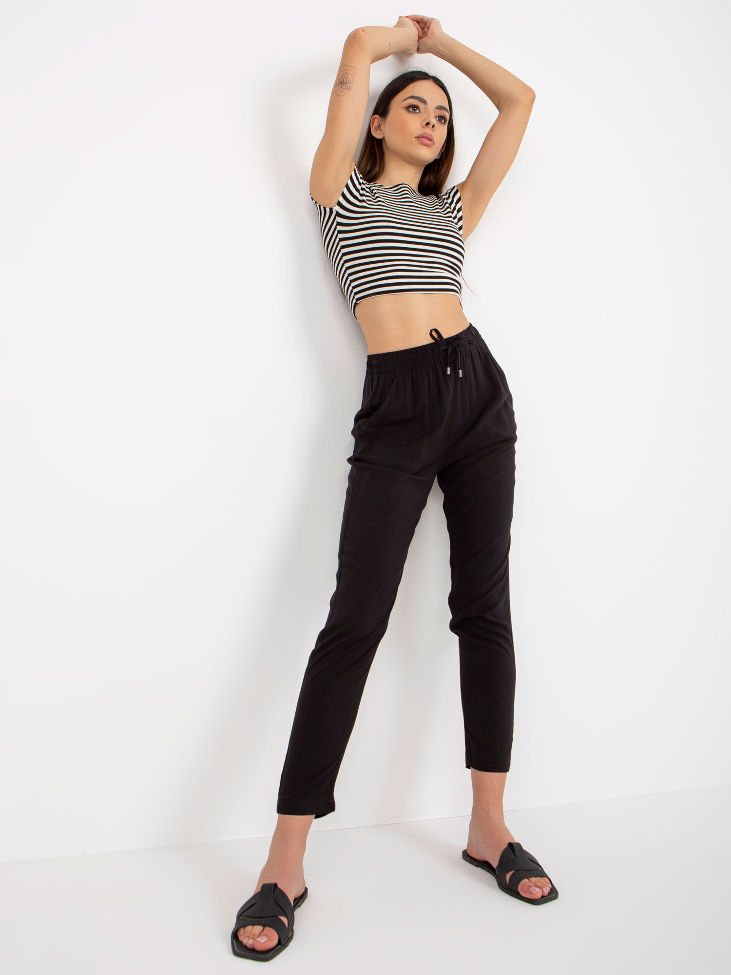 Czarne letnie spodnie z materiału z wiązaniem SUBLEVEL .