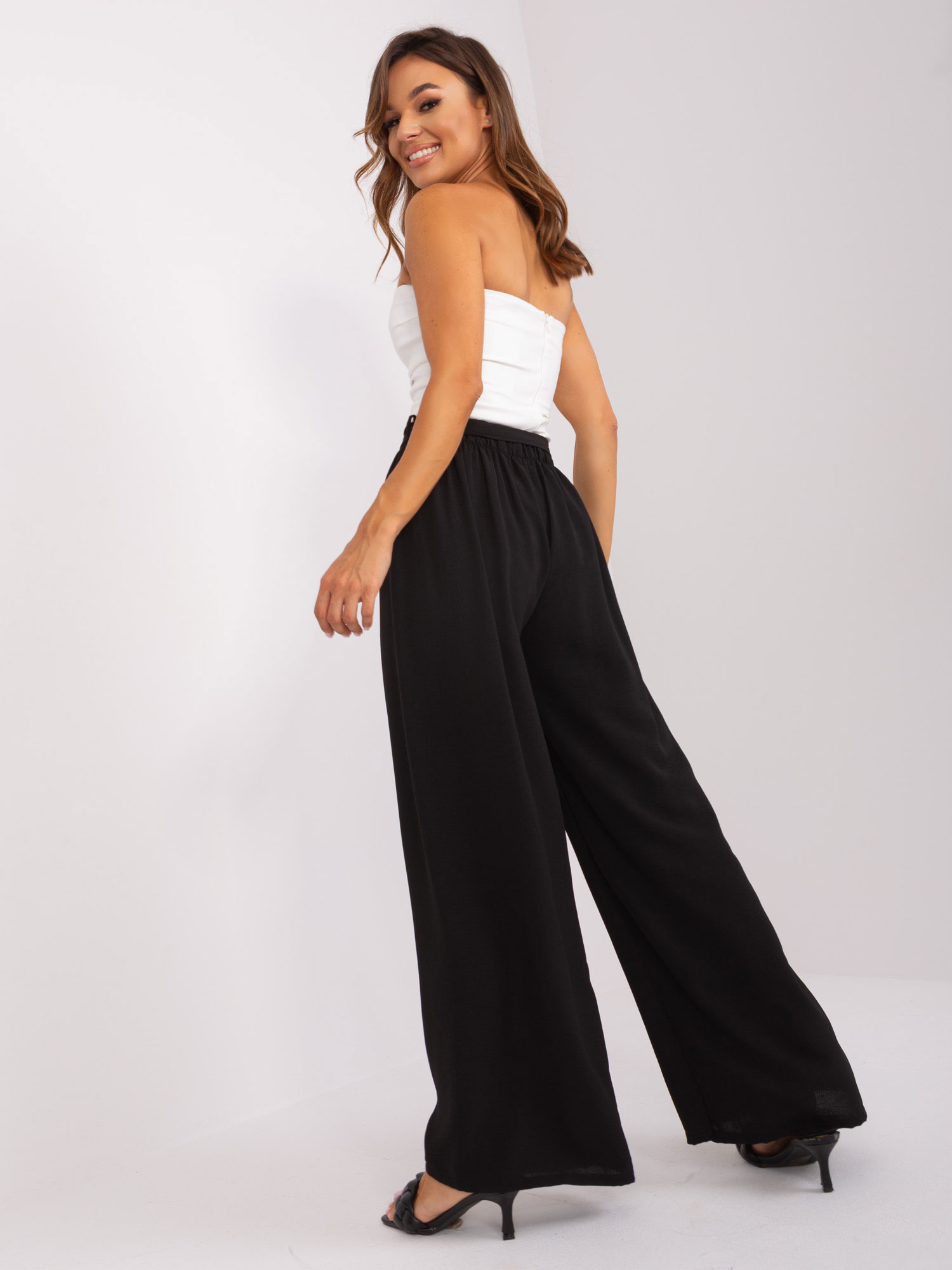 Czarne letnie spodnie z szeroką nogawką OCH BELLA .
