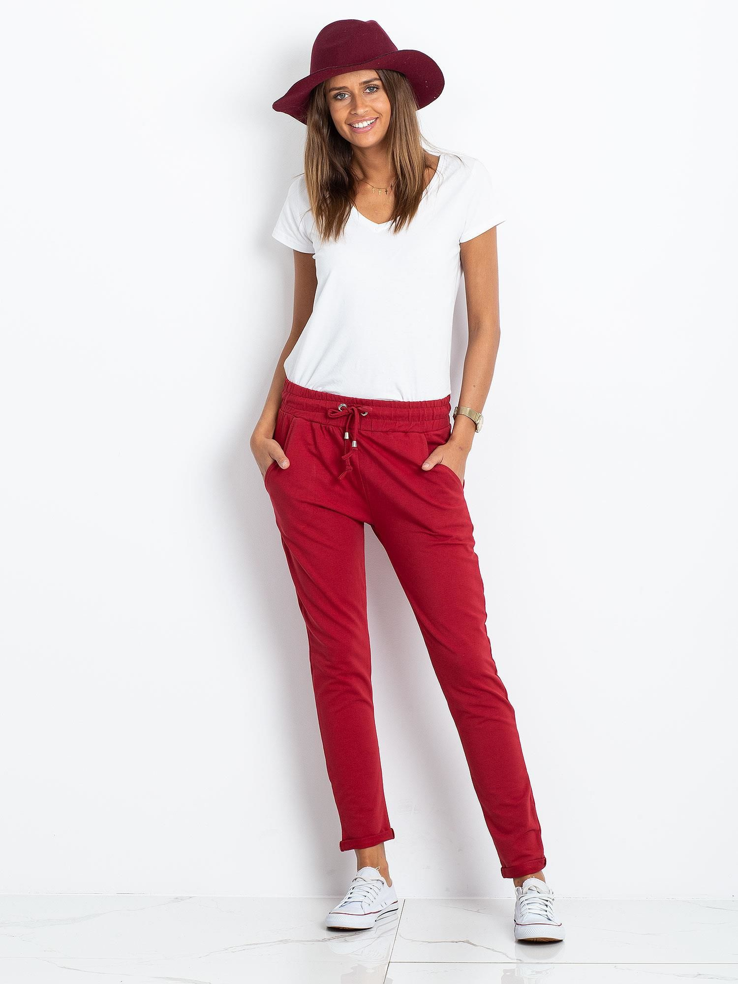Bordowe damskie spodnie dresowe.