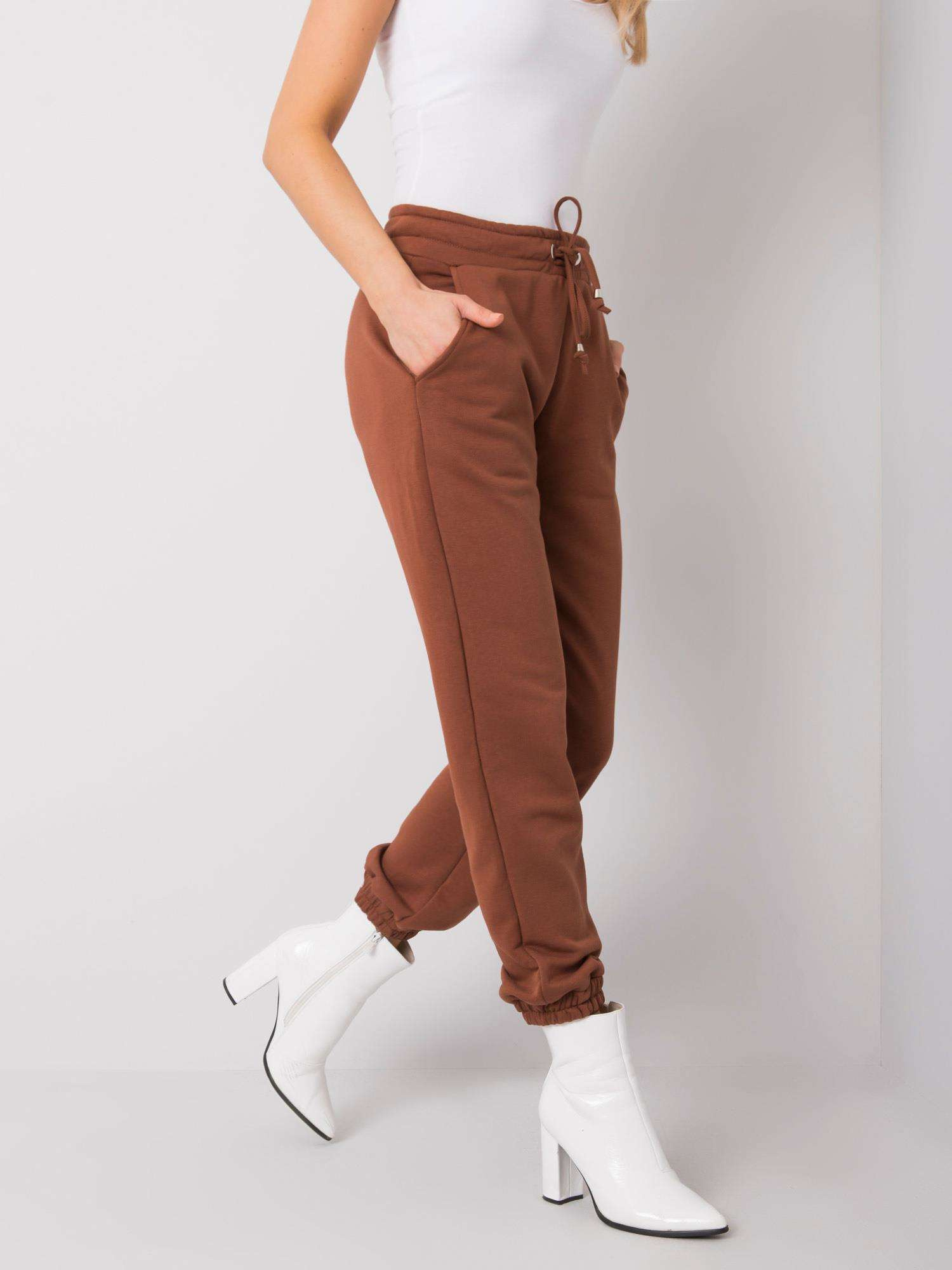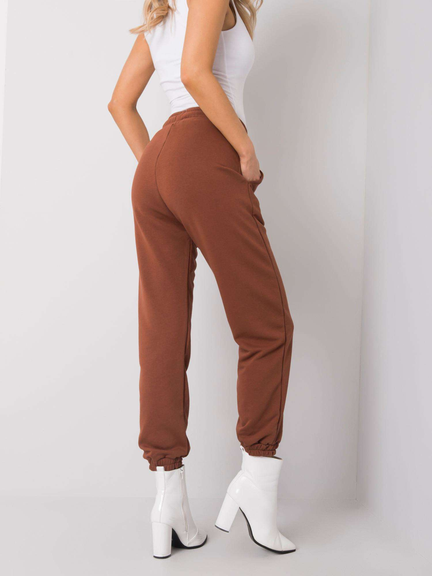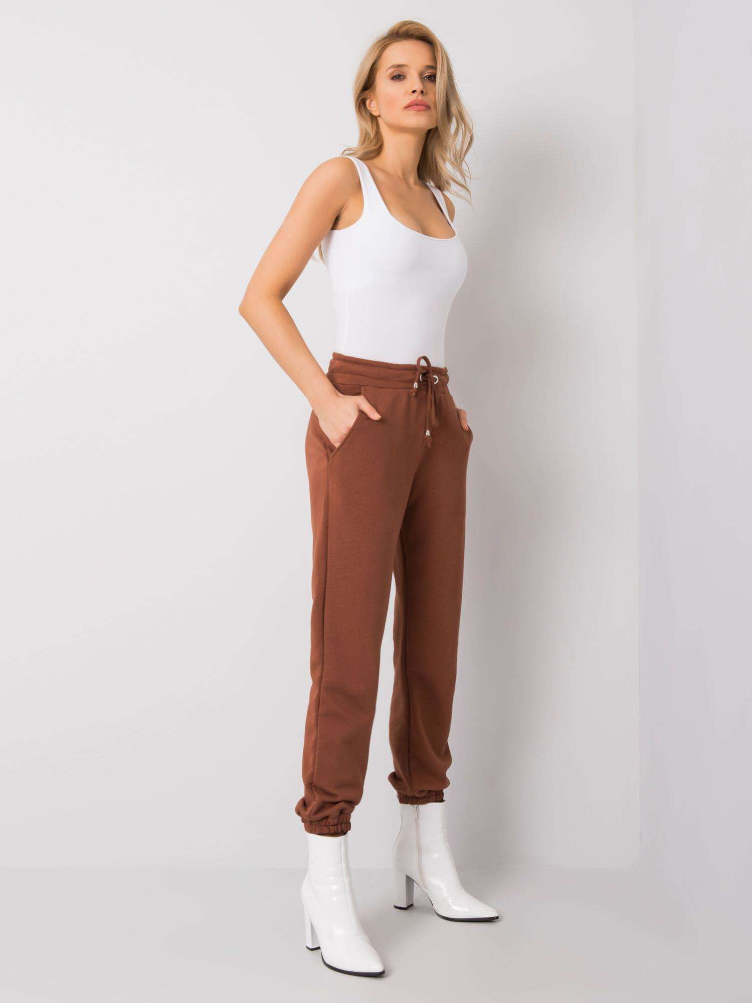RUE PARIS Brązowe spodnie dresowe damskie.