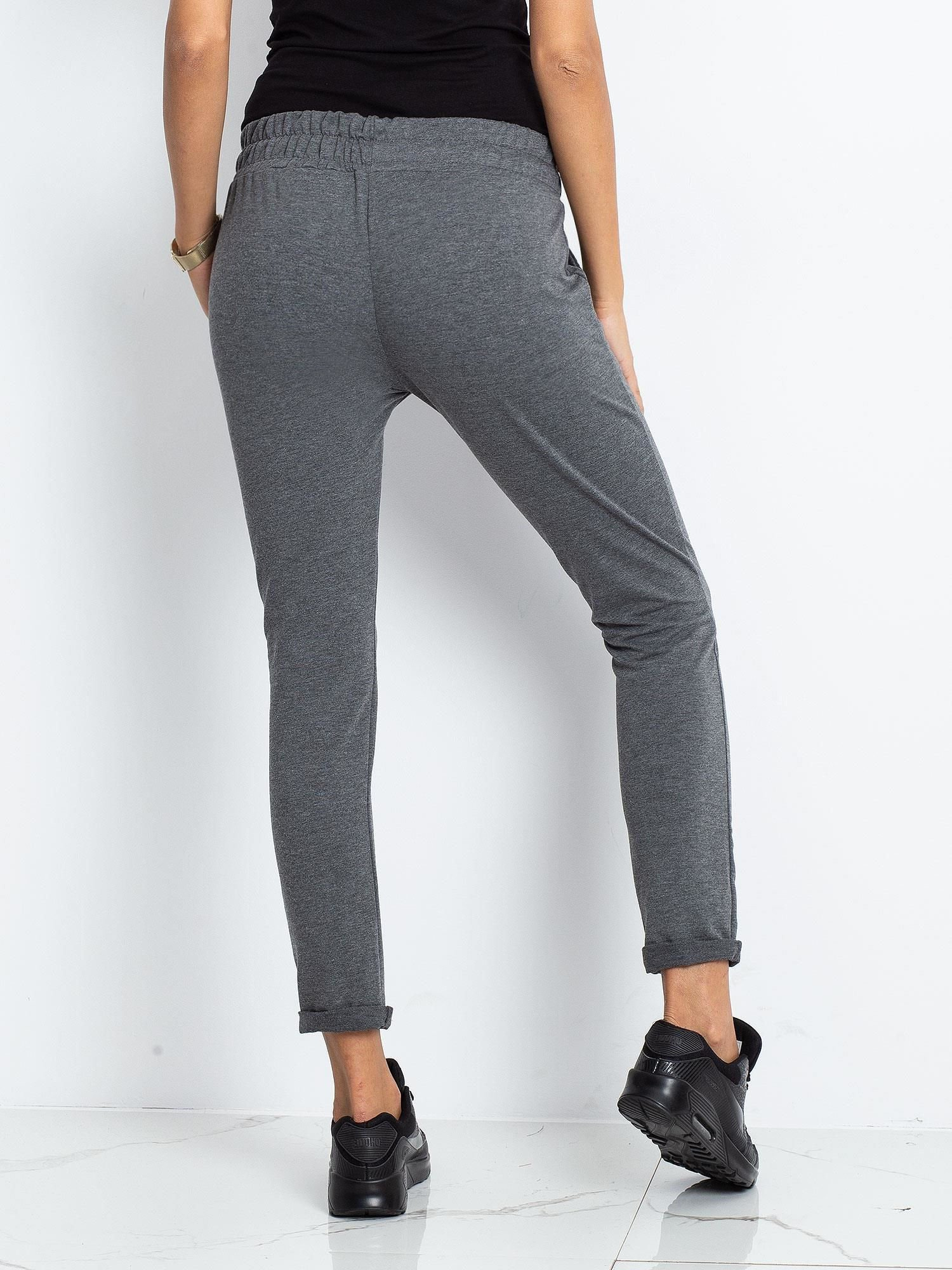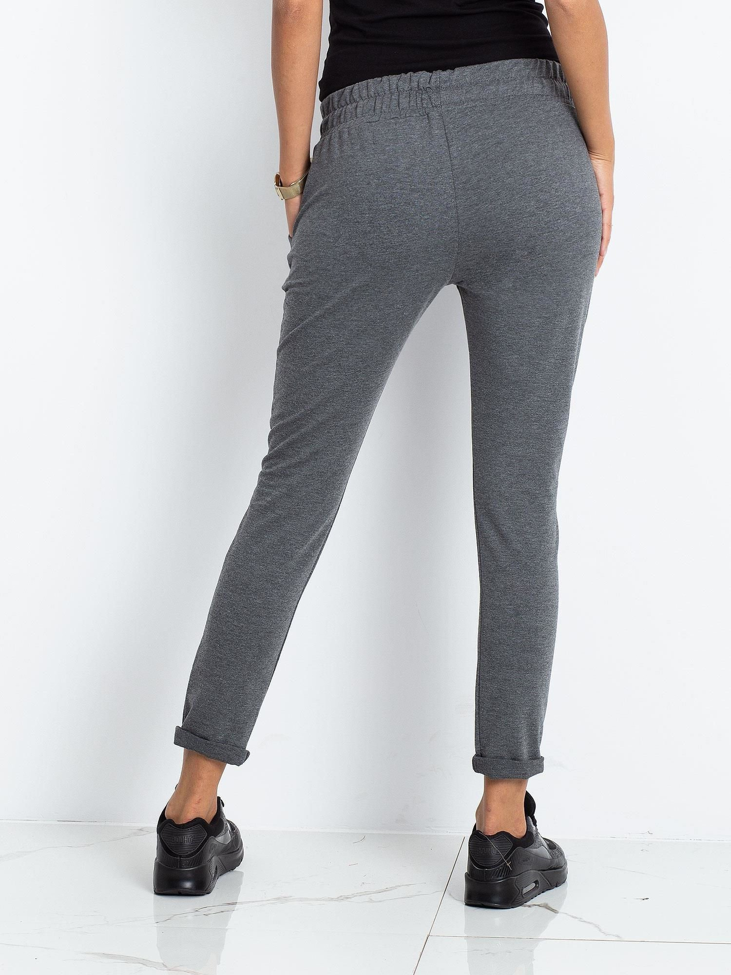 Ciemnoszare damskie spodnie dresowe.
