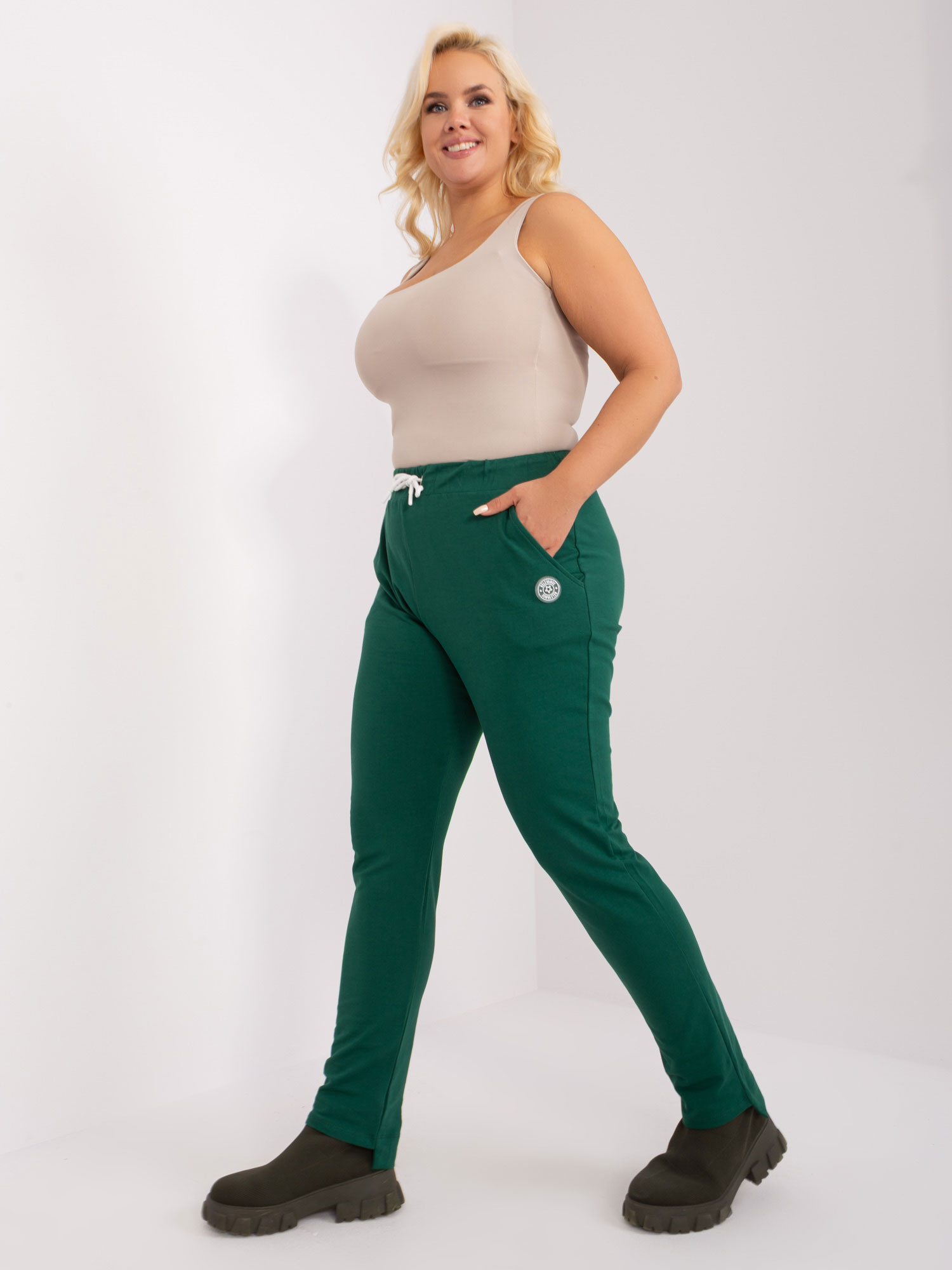 Ciemnozielone spodnie dresowe plus size.
