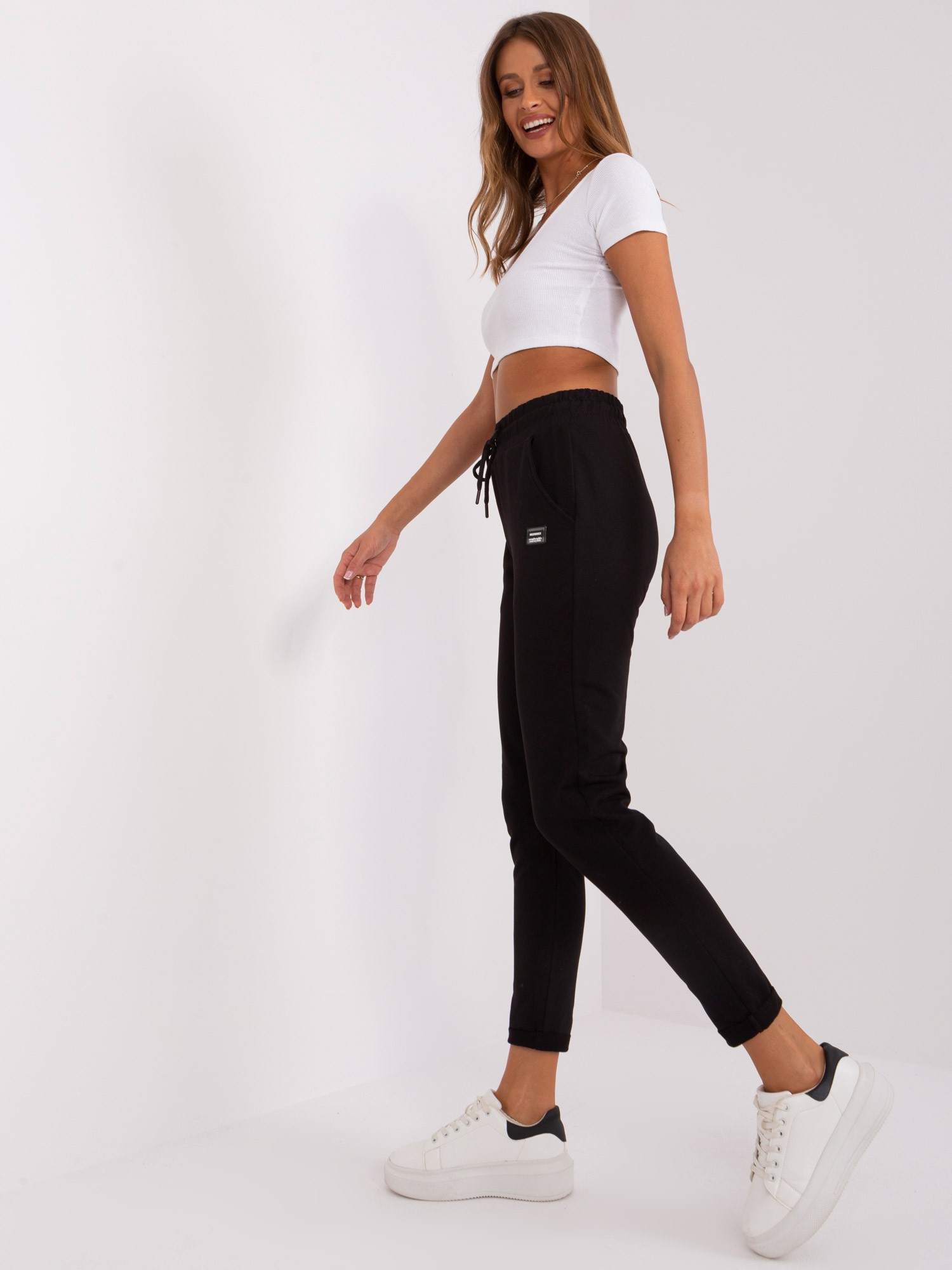 Czarne spodnie dresowe z wysokim stanem .