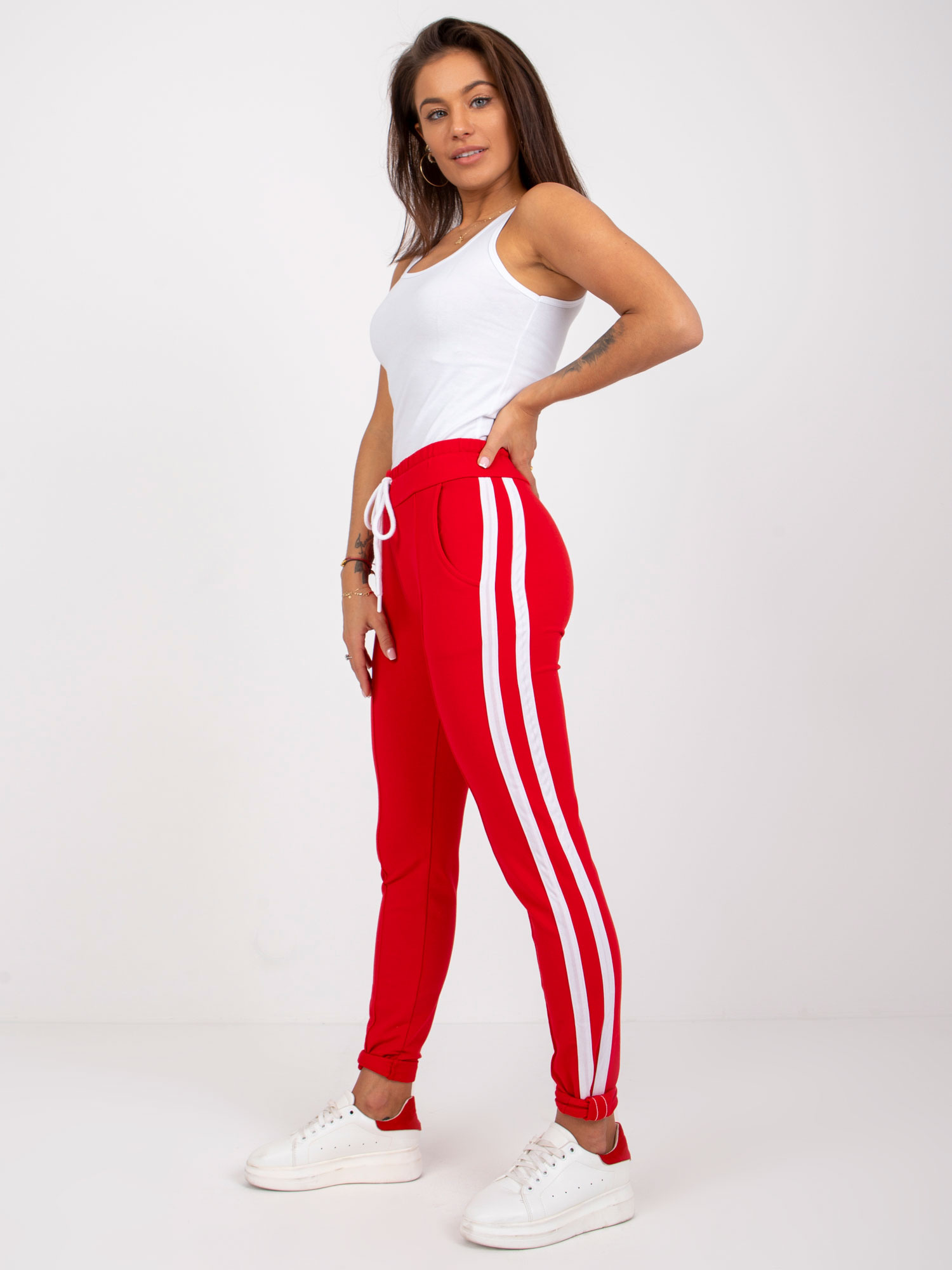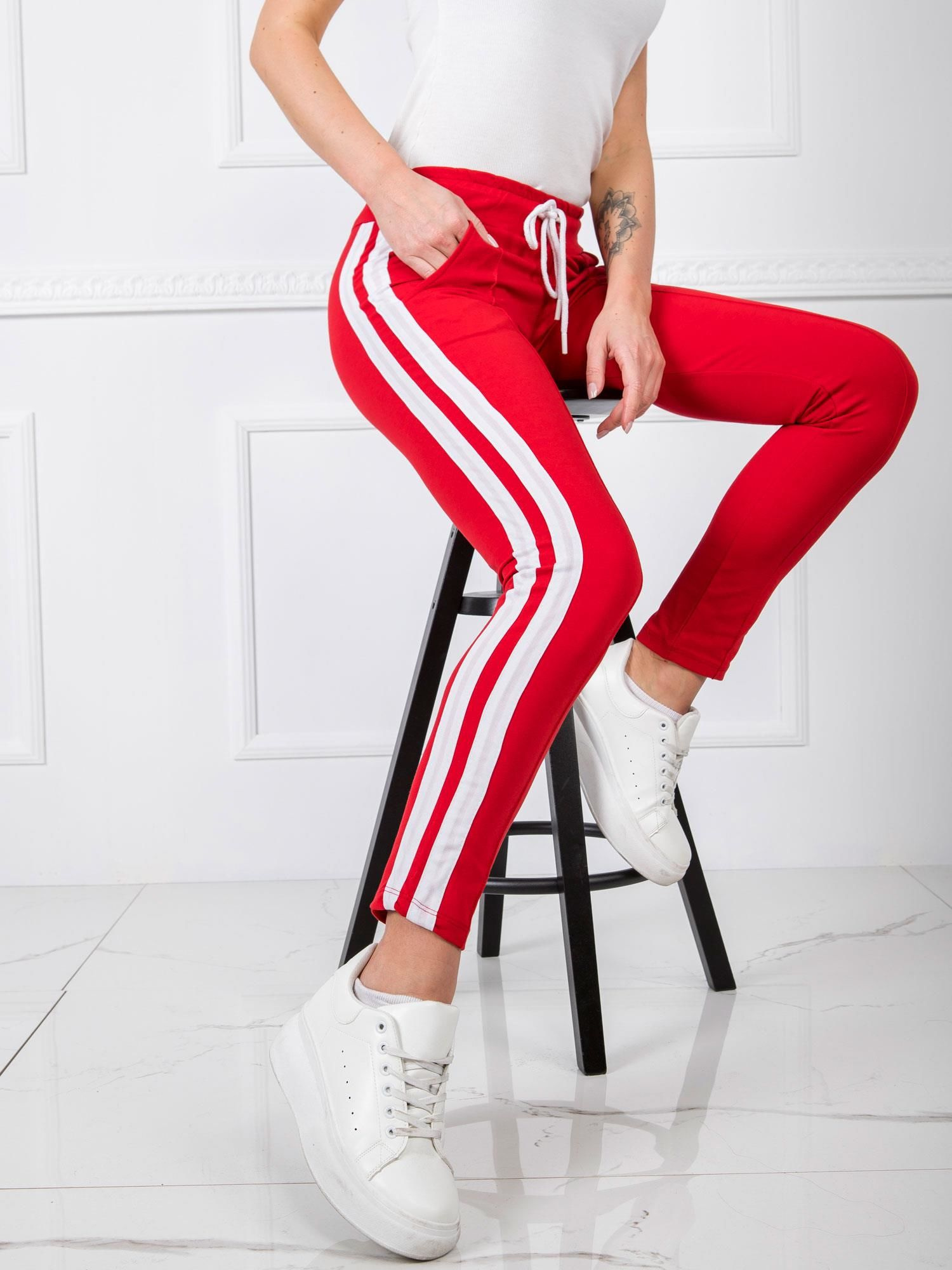 Czerwone spodnie dresowe damskie.