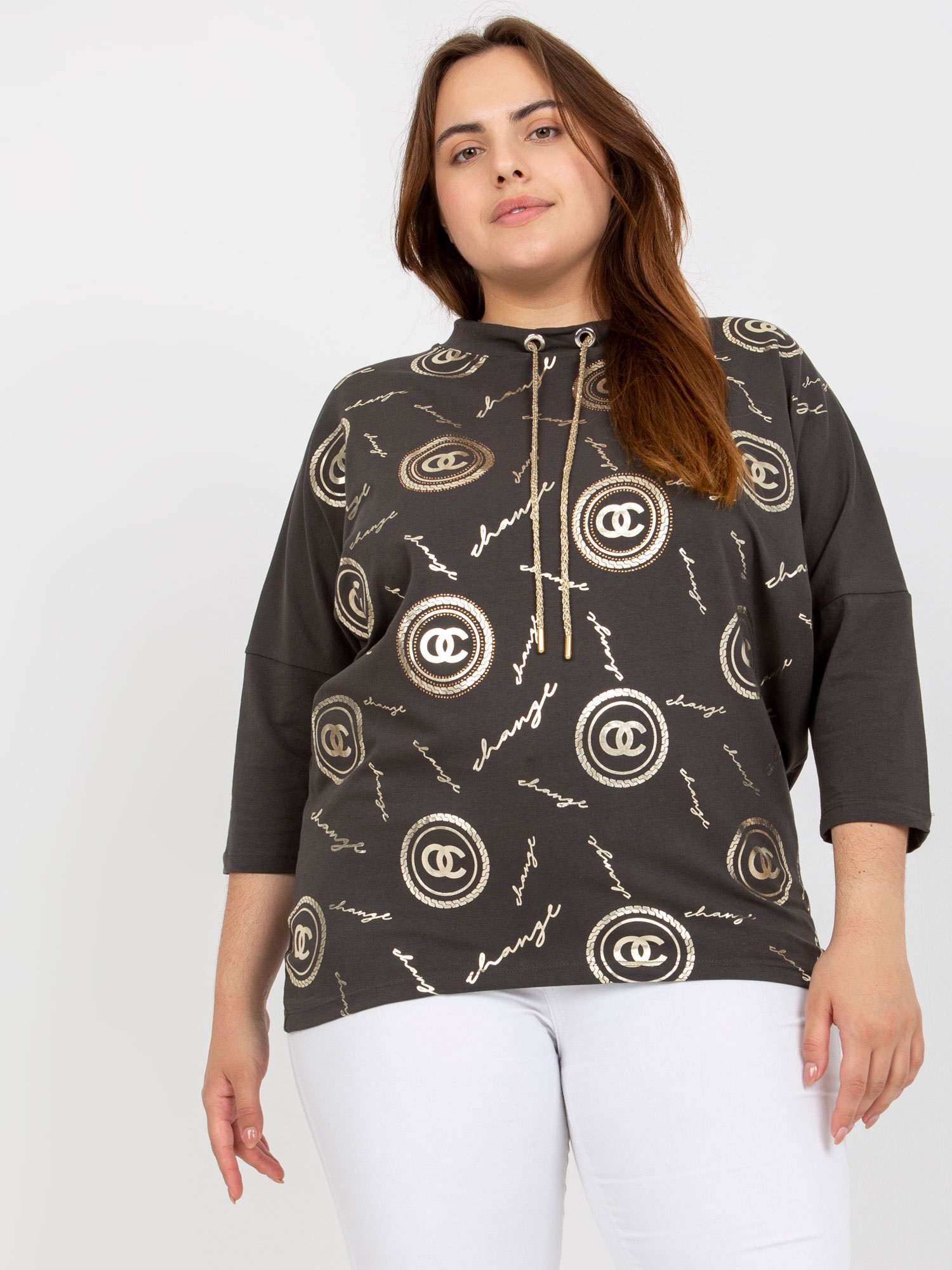 Modelka ma na sobie rozmiar S. Wymiary modelki: wzrost 173 cm, biust 82 cm, talia 62 cm, biodra 91 cm.