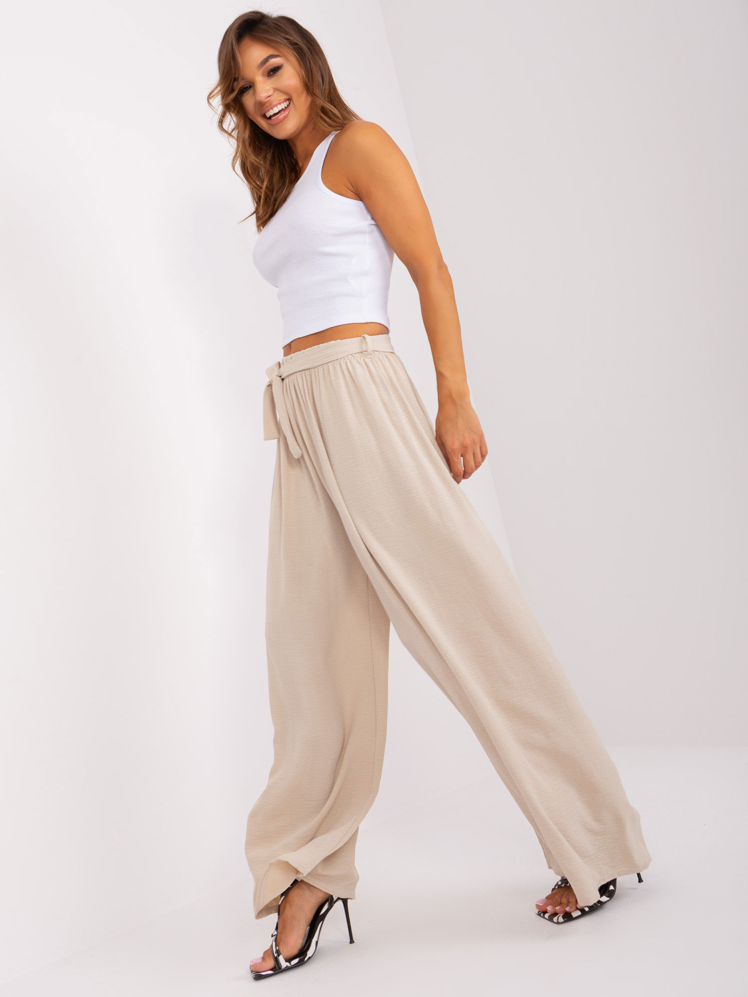 Jasnobeżowe spodnie szwedy z paskiem OCH BELLA .